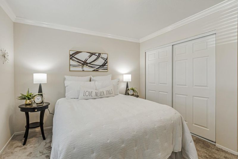 Move-in Ready Condo in Cambrian with Pioneer High School Access located in the desirable highly rated Pioneer High School boundary, this updated upstairs condo offers comfort and convenience. Enjoy a peaceful outlook toward the community pool and a welcoming single level floor plan featuring 2 bedrooms and 1 bathroom, 798 sq ft of living space. This comes with an updated kitchen, central heat/ac, large fridge, extra storage downstairs. Thoughtful updates make this home truly turnkey. Updates include: ALL NEW attic insulation, fresh interior paint, Samsung dishwasher, updated LED lighting, new switches, plugs, NEST Wi-Fi thermostat control, all new door hardware, larger bathroom cabinet/sink/faucet/lighting/mirror enhancement. Enjoy each bedroom update creating a cozy sanctuary with warm central lights, fresh blinds, and brand-new plush carpeting. This community is pet-friendly and perfectly situated near Lunardi's Market, Petco, Costco, and easy access to Freeway 85. With thoughtful updates, smart technology, and a convenient location, this condo is ready to welcome its next owner.
