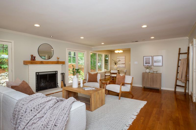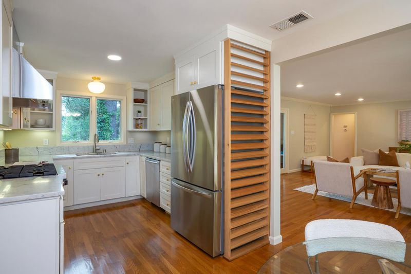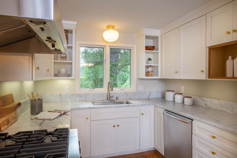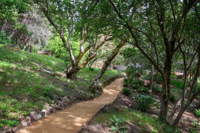 Peaceful Updated Country Living on Nearly 1.5 Acres . Beautifully updated and framed by sun-swept open meadows and majestic trees, this property spans nearly 1.5 acres at the end of a lane. An inviting front porch takes in the tranquil surroundings and sounds of nature. Stepping inside, the ambiance is bright and inviting with refinished hardwood floors, crisp white woodwork, and expansive windows and glass doors. The designer all- white kitchen has Carrara marble counters and stainless steel appliances, including a quality Viking gas range. A separate wing comprises 2 full-size bedrooms and one small bedroom, plus 2 full baths. Perfect for exercise, art, and/or office needs is a detached 2-room studio plus a Nordic-inspired newly added second studio. Tying it all together are many beautiful and versatile outdoor living spaces plus a fully fenced vegetable garden, small orchard, and a chicken coop. Open Houses Sat/Sun 4/11-12 , 1:30pm-4:30pm
