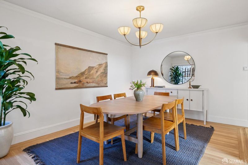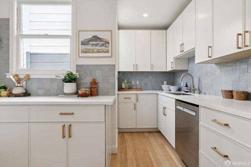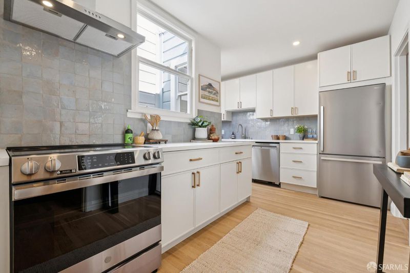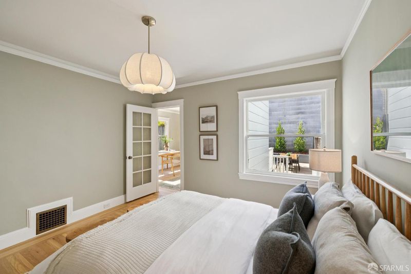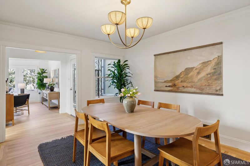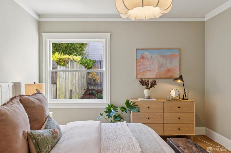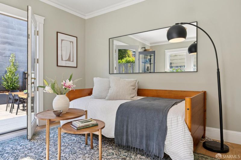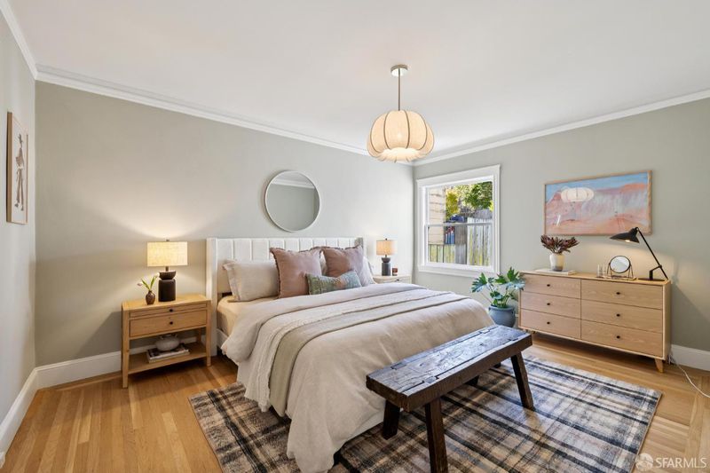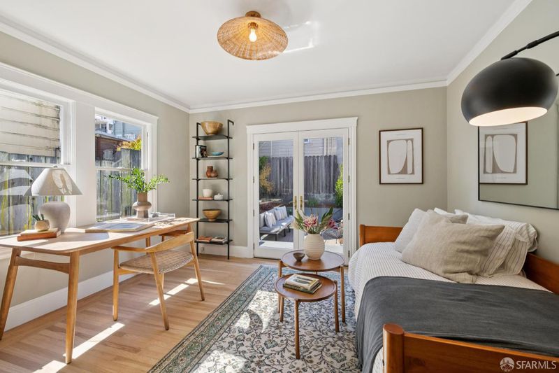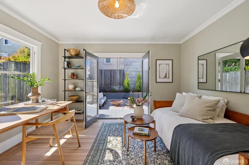 Sweet & updated Golden Gates Heights single-family home with ample sized rooms, period details, a lovely garden, and expansion potential. This lovely barrel-front home offers its signature spacious living room with curved windows with green outlooks, and an original fireplace with built-ins, ideal for entertaining and cozy nights at home. Adjacent is a formal dining room with room for a large table, connected to a remodeled kitchen with abundant storage, Zellige backsplash, and all new cabinets & appliances. Down the hall are two ample sized bedrooms and a back sunroom, great use as an office or kids playroom/bedroom. French doors off the sunroom lead to a private, sun-filled garden. A full bath and two linen closets complete this functional main level. Downstairs, a huge garage is ready for future development/expansion - plenty of space for a primary bedroom/bath, or family room etc. in additional to parking. Centrally located with quick access to the Inner Sunset, West Portal, Golden Gate Park, and many favorites on the west side of town.