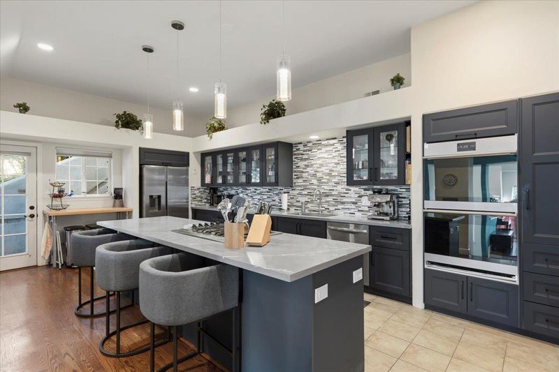 - Cooktop - Gas, Countertop - Quartz, Dishwasher, Exhaust Fan, Ice Maker, Island, Oven - Built-In, Oven - Double, Oven - Electric, Oven - Self Cleaning, Refrigerator