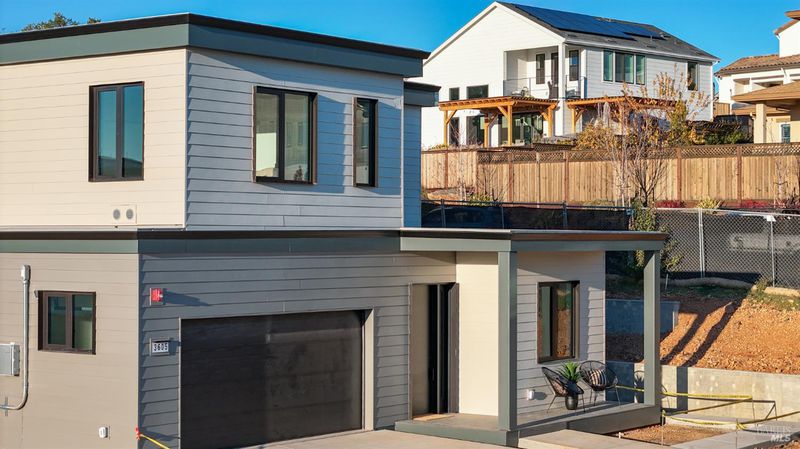 This newly built Veev home in Santa Rosa's desirable Fountaingrove neighborhood combines modern design with cutting-edge technology for a seamless living experience. Located just minutes from parks, the exclusive Fountaingrove Club, Paradise Ridge Winery, and premier dining and shopping, it offers both convenience and luxury. Designed for long-term durability and minimal maintenance, the home features eco-friendly High-Performance Surface (HPS) walls, European style tilt-and-turn windows, and linear, dimmable LED lighting. Smart home enhancements include room specific HVAC control, solar panels, a Tesla Powerwall, and wiring for two EV chargers, ensuring exceptional energy efficiency. The gourmet kitchen is a chef's dream, equipped with sleek cabinetry, a wine fridge, a coffee bar/pantry, and a spacious solid-surface island. The open floor plan flows effortlessly between the kitchen, great room, and outdoor spaces, perfect for entertaining. Upstairs, a cozy family room provides additional space to unwind, while the spacious primary suite offers a private retreat. Thoughtfully designed with precision engineering, this home is built to inspire, endure, and enhance everyday living. Photos may not depict actual home being sold. Photos may be of model home.