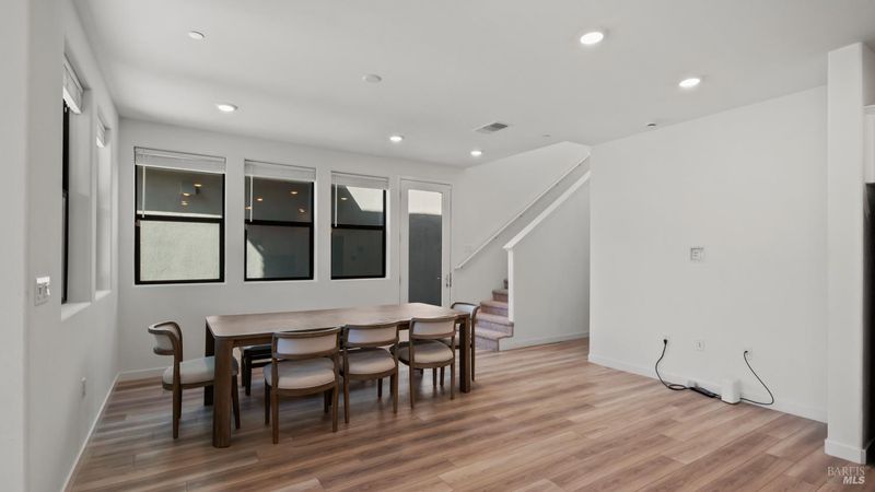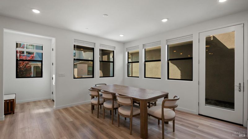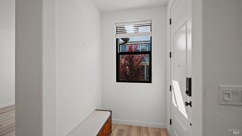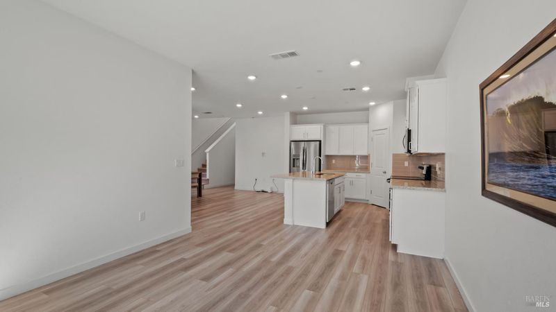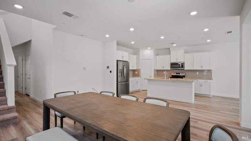 Welcome to 1586 Waterside Lane in Rohnert Park's SOMO Village, a 2024 beautifully built two-story home offering 1,810 square feet of thoughtfully designed living space. This residence features 3 bedrooms, 2.5 bathrooms, and a spacious two-car garage. Step inside to an open and inviting floor plan filled with natural light. The modern kitchen is equipped with granite countertops, a stylish tile backsplash, stainless steel appliances, and a freestanding electric range. Upstairs, the generous primary suite serves as a relaxing retreat, complete with a private balcony to unwind. Additional highlights include owned solar, an energy-efficient water heater, luxury vinyl plank flooring on the main level, and plush Shaw carpeting throughout the upstairs bedrooms and staircase. The home also features an alley access garage and a side yard, offering both convenience and functionality. Enjoy the beautifully maintained landscaping and the sunshine that Sonoma County is known for. This smart and energy efficient home is one you won't want to miss!