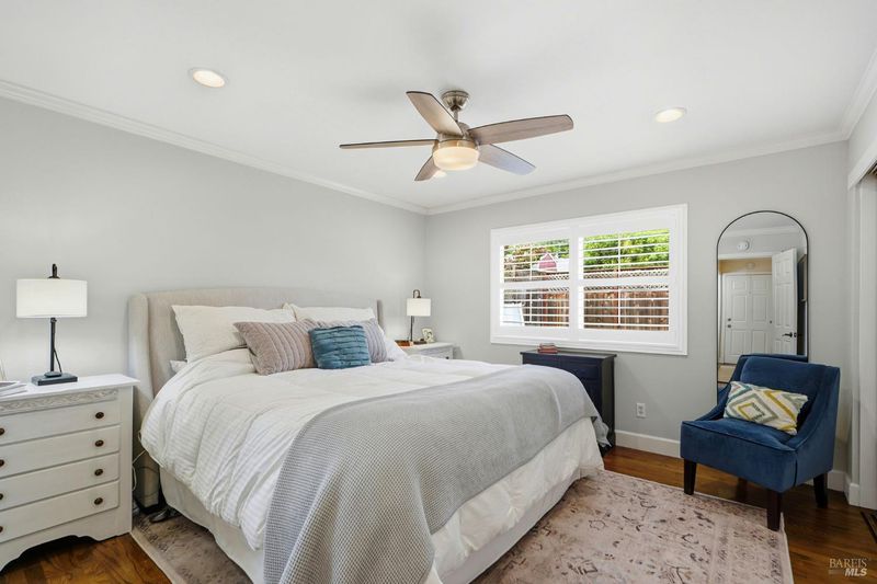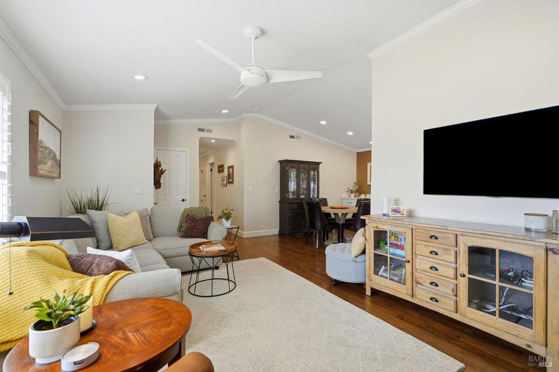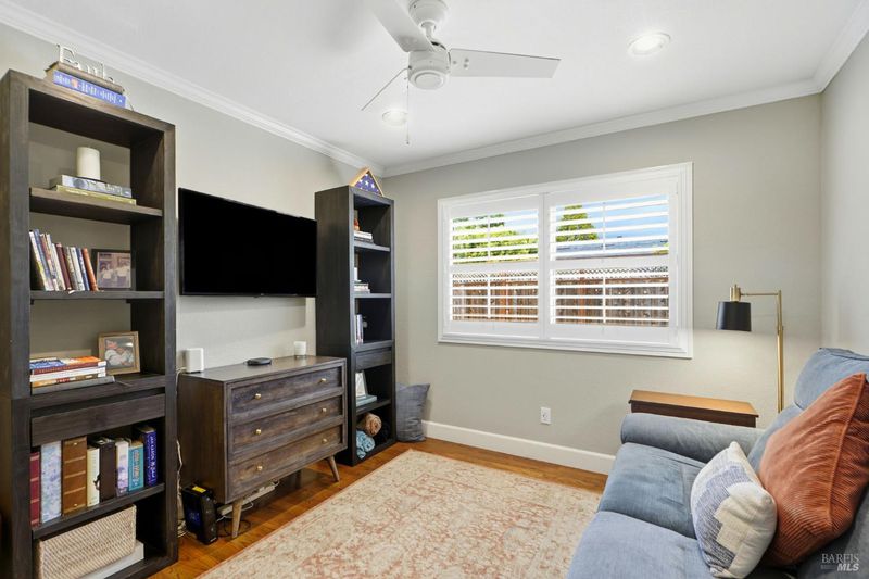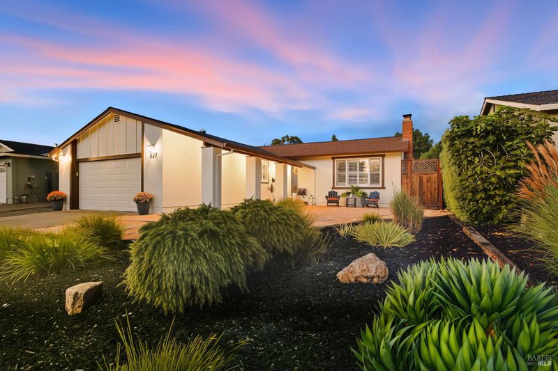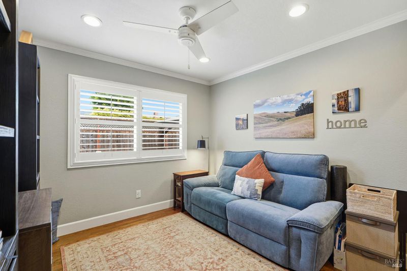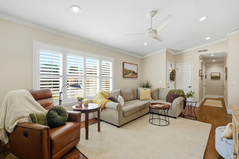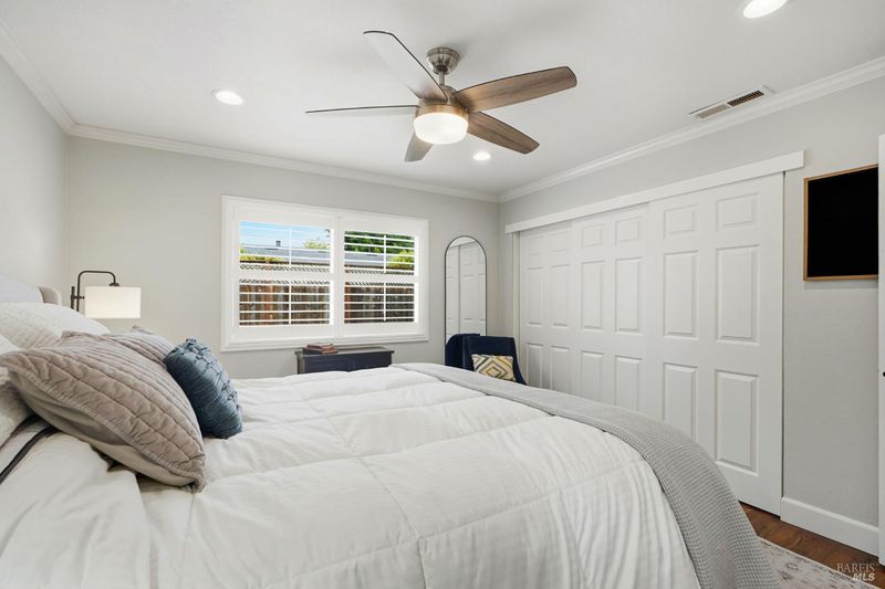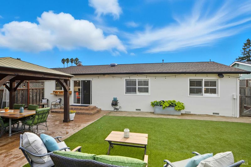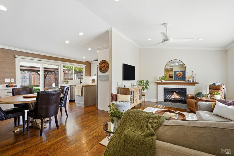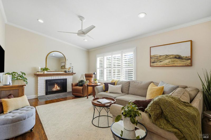 Immaculate single-level 3-bedroom,2 bath home that is sure to impress! If you have been waiting for a magnificent move-in-ready home, you have found it! Tasteful low-maintenance landscaping features decomposed granite as you approach under the covered breezeway and enter through the beautiful new front door. The cozy living room with a picture window and fireplace with custom walnut mantle & tile surround will be the heart of the home where memories are made! Three lovely bedrooms,with one being used as an office. Newly installed electrical panel,whole house fan, exterior freshly painted,vaulted ceilings,white oak hardwood flooring,plantation shutters,A/C,tankless water heater,remodeled kitchen & baths,crown molding,ceiling fans & LED recessed lighting are just some of the features. With crisp white kitchen cabinetry and quartz counters, the chef's kitchen is a treat featuring a five-burner gas range and stainless-steel appliances. Opening to the dining area with ample seating for guests, you may enjoy the custom built-in buffet sideboard and the easy access to an outdoor oasis with spa, pergola, turf, patio, and ample side yards. Garage complete with triple-fleck floor coating, built-in cabinets track storage system & laundry facilities w/separate sink. Welcome home!