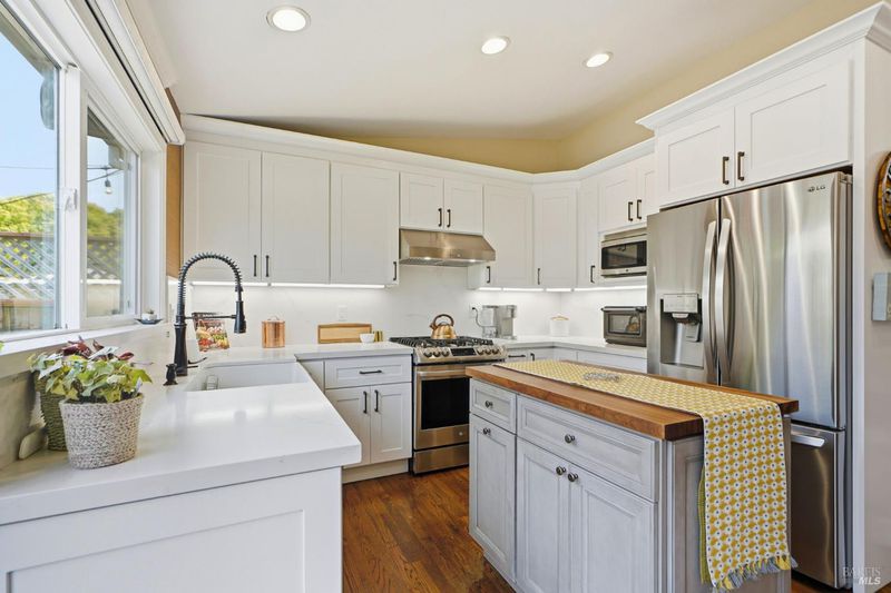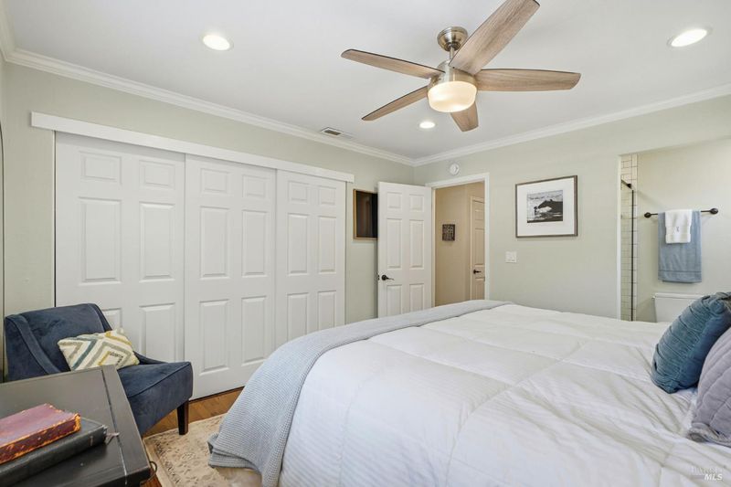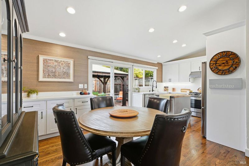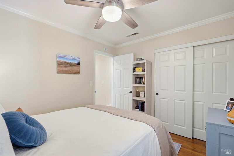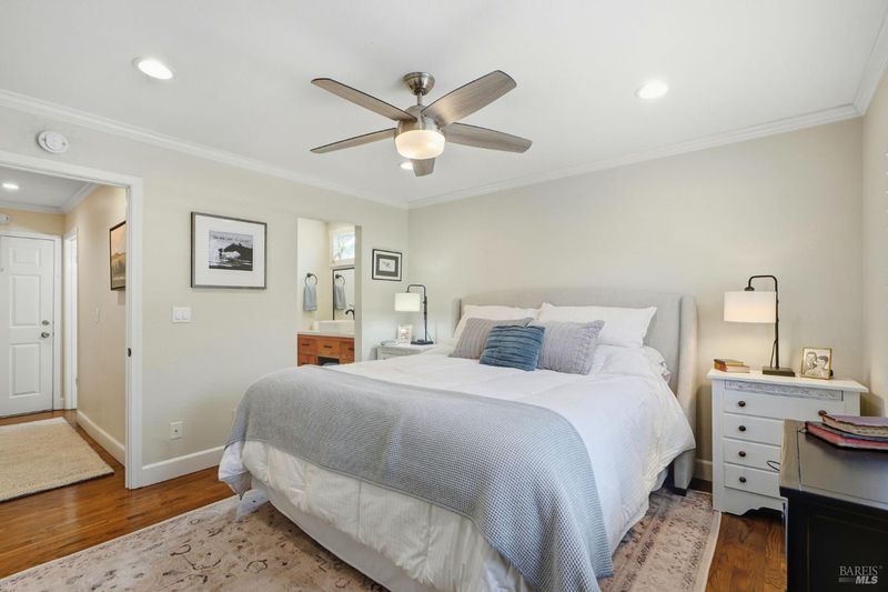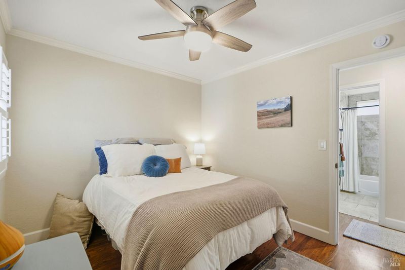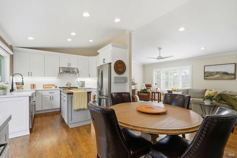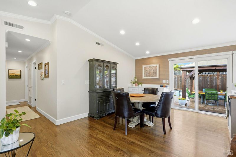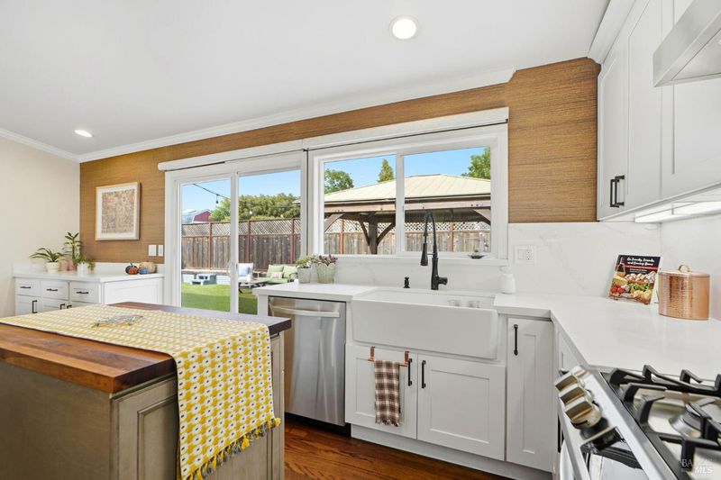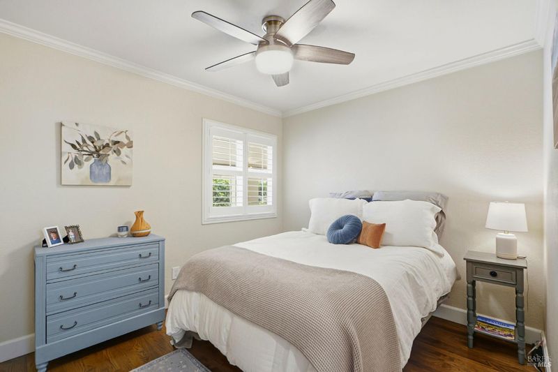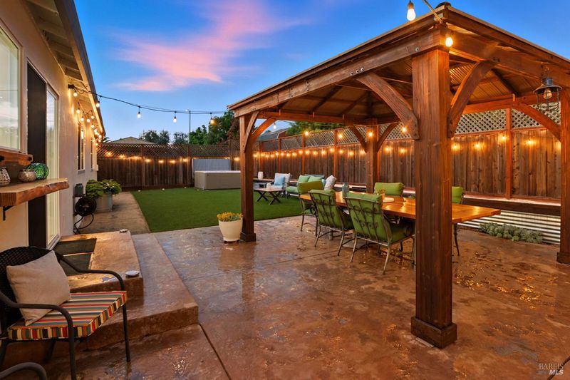 Immaculate single-level 3-bedroom,2 bath home that is sure to impress! If you have been waiting for a magnificent move-in-ready home, you have found it! Tasteful low-maintenance landscaping features decomposed granite as you approach under the covered breezeway and enter through the beautiful new front door. The cozy living room with a picture window and fireplace with custom walnut mantle & tile surround will be the heart of the home where memories are made! Three lovely bedrooms,with one being used as an office. Newly installed electrical panel,whole house fan, exterior freshly painted,vaulted ceilings,white oak hardwood flooring,plantation shutters,A/C,tankless water heater,remodeled kitchen & baths,crown molding,ceiling fans & LED recessed lighting are just some of the features. With crisp white kitchen cabinetry and quartz counters, the chef's kitchen is a treat featuring a five-burner gas range and stainless-steel appliances. Opening to the dining area with ample seating for guests, you may enjoy the custom built-in buffet sideboard and the easy access to an outdoor oasis with spa, pergola, turf, patio, and ample side yards. Garage complete with triple-fleck floor coating, built-in cabinets track storage system & laundry facilities w/separate sink. Welcome home!