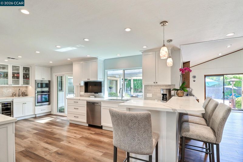 Welcome to 3104 Kirby Lane in Walnut Creek -a beautiful contemporary 1-story home situated on a desirable corner lot in the heart of Northgate. Offering 5 bedrooms & 3 full baths, this fantastic home has been significantly remodeled & upgraded. Designed for both comfort & entertainment, this home showcases a bright & inviting family room w/a cozy fireplace, a formal dining room & an incredible gourmet kitchen complete with stone countertops, breakfast bar, eat-in dining area & modern appliances, including a built-in oven & electric cooktop! Enjoy a blend of tile & luxury flooring, soaring ceilings & plenty of windows that fill the home with natural light. The attached large 3 car garage provides convenient interior access, while central heating & new air conditioning ensure year-round comfort. Plus a rubust solar system allows for lots of energy efficiency. Step outside to a private backyard surrounded by mature trees providing maximum privacy that includes a fenced yard, large patio, and sparkling in-ground pool—perfect for relaxing or hosting gatherings. Ideally located in the Northgate area of Walnut Creek featuring 12 years of desirable award winning schools including Valle Verde, Foothill & Northgate High! This dream home is close to dining, Boundary Oak golf course & more!