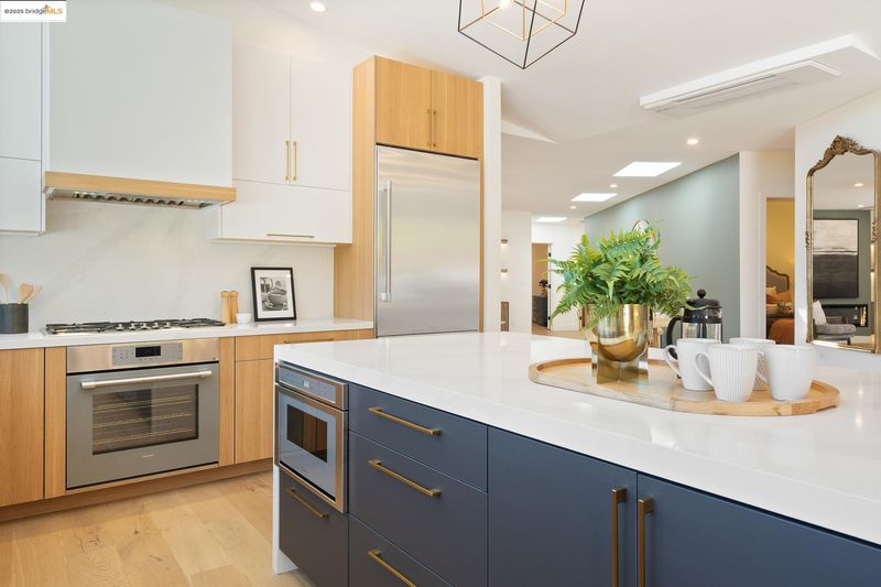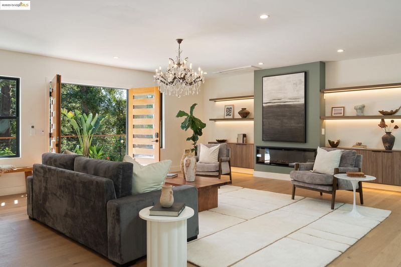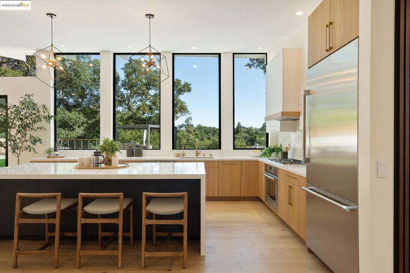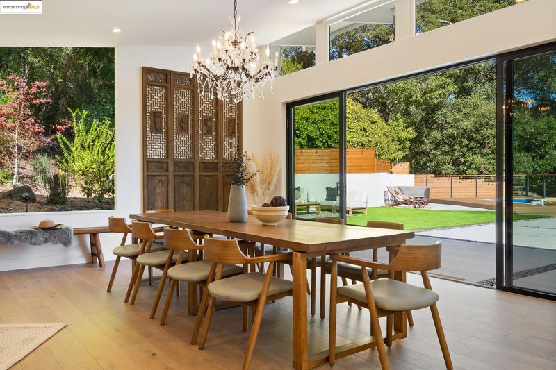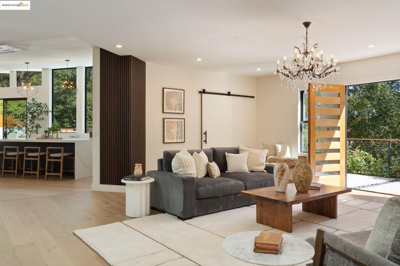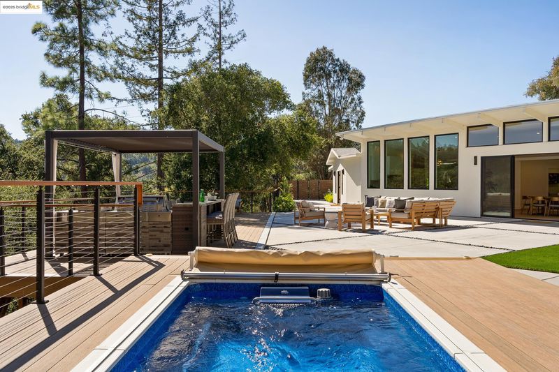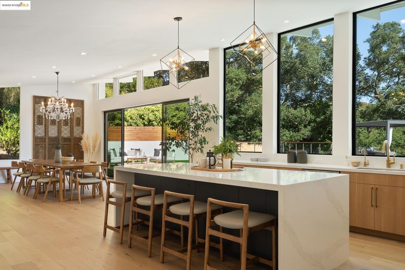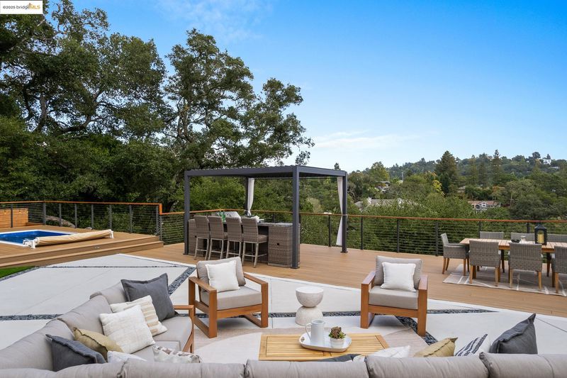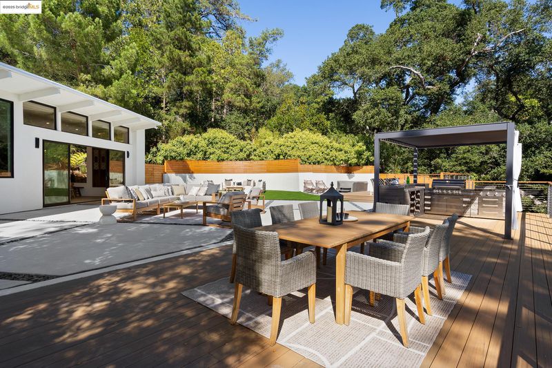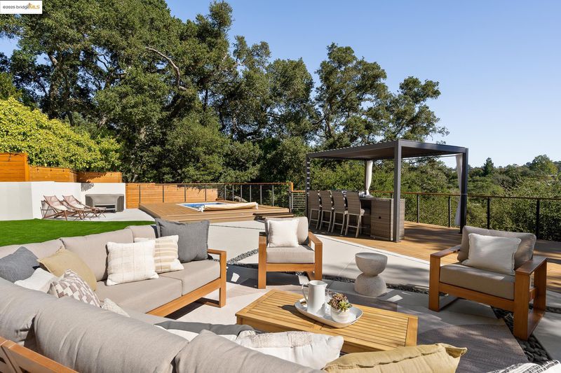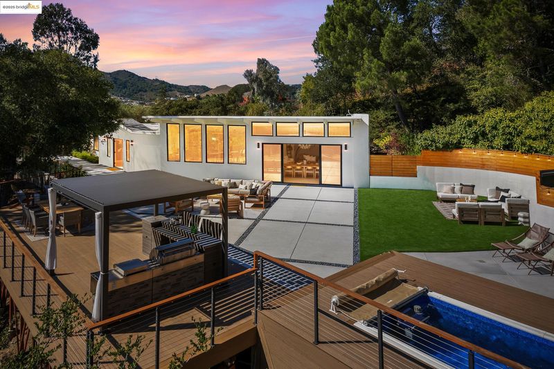 Set on 1.73 acres of landscaped grounds, this reimagined mid-century modern home spans 3,174 square feet & is filled with natural light, accentuated by clean architectural lines. The open-concept layout features wide-plank oak flooring & soaring ceilings, framed by expansive glass walls showcasing captivating, level-out private grounds & hillside views. At the heart of the home, the sleek kitchen boasts quartz countertops, premium Thermador appliances, custom cabinetry, & a waterfall island for gatherings. The seamless flow of the living & dining areas is complemented by a gas fireplace & built-in shelving. W/ 4 spacious bedrooms, including a luxurious primary suite w/ a spa-like bath & oversized frameless glass shower, this residence caters to comfort & style. The expansive backyard is ideal for entertaining, featuring multiple decks, barbecue, & an Endless Pools swim spa. The lower lot offers potential for a guest house, ADU, or sports court. Conveniently located minutes from downtown Orinda & Lafayette, BART, & top-rated schools, this property combines privacy, elegance, & practicality—perfect for discerning buyers seeking a sophisticated lifestyle.