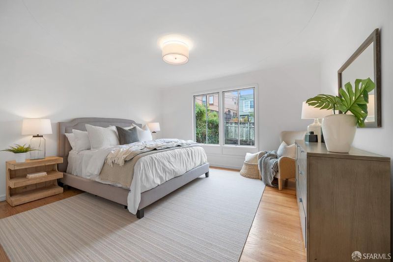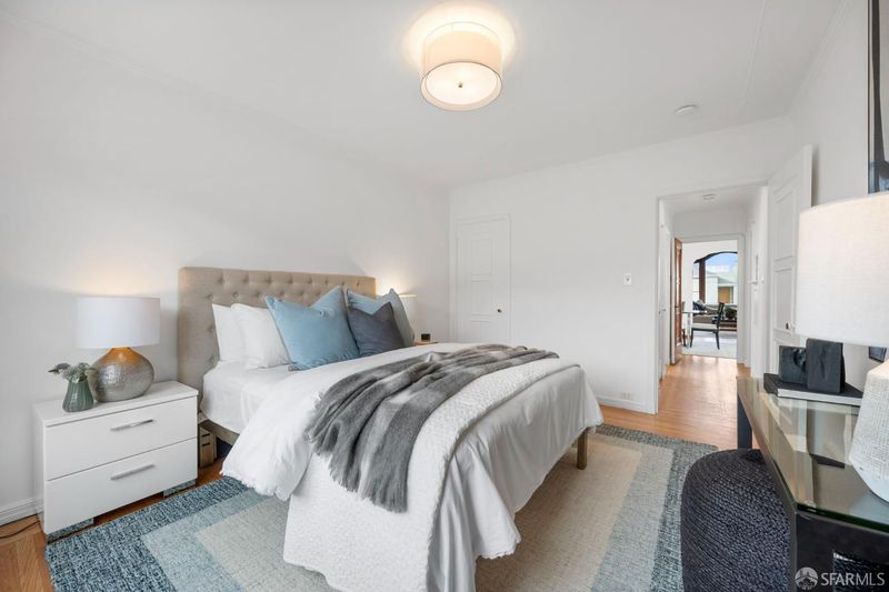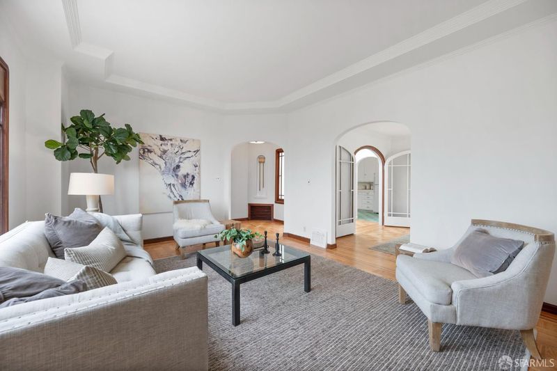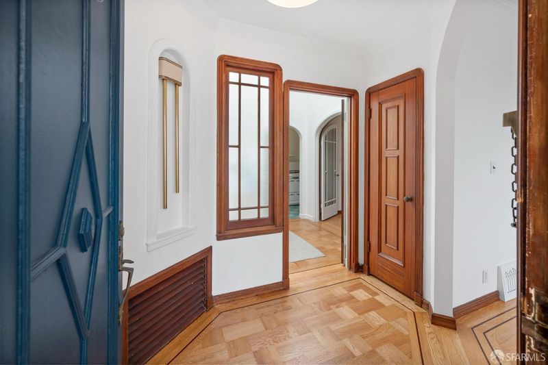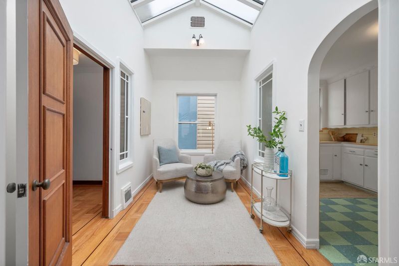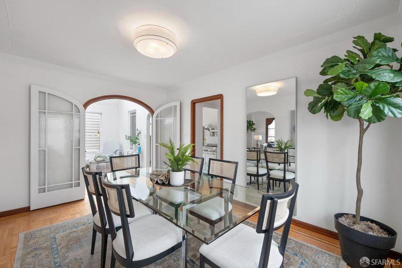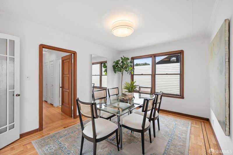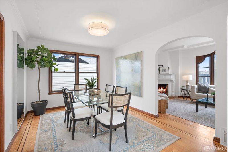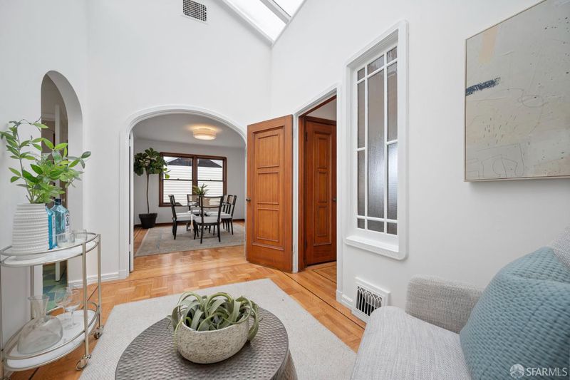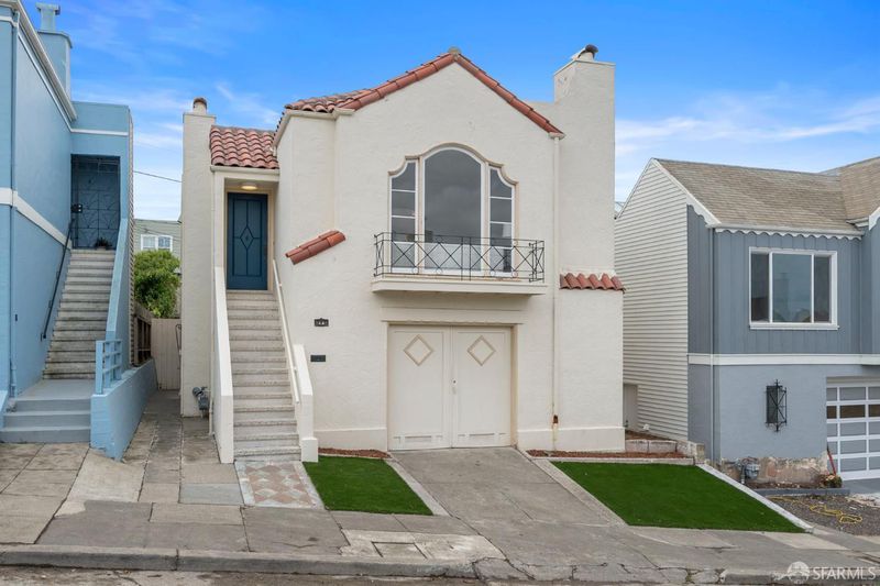 This fully-detached Spanish Mediterranean home radiates timeless San Francisco charm from the heart of the Portola district. Classic 1940s details with original parquet wood floors and walnut inlay, arched doorways, tray ceilings, and original wood doors, create a warm, elegant backdrop throughout. The formal living room features arched windows with a Juliet balcony and a striking fireplace, flowing into a bright, spacious dining room ideal for gatherings. Beyond, French doors open to a cheerful breakfast room with skylight ceiling bathing the home in natural light. Upstairs are two generous bedrooms overlooking the garden, a vintage kitchen, a pastel-tiled bath with separate tub & shower, and ample natural light throughout. A versatile lower-level bonus room with half bath offers flexibility for a guest suite, home office, or media room. The sunny backyard includes a flat patio and raised garden beds, perfect for outdoor entertaining. Finished with an oversized 2-car garage plus driveway parking, W/D hookups, endless amounts of storage space or substantial expansion potential. Only minutes to McLaren Park's 312-acre park, golf course, pool, tennis courts, sports fields & 7 miles of walking trails and 101/280 freeway access, making this a super accessible place to call home.