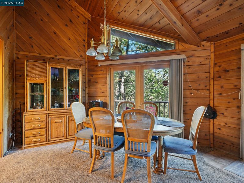 Craftsman-inspired log home with scenic views from every window. This 1,654 sq. ft. residence features 3 bedrooms (including one conveniently located on the main floor), 2 bathrooms. Large kitchen features tile counters & island with breakfast bar seating, natural wood cabinetry, all black appliances & opens to casual dining area. The cozy mountain-inspired living room exudes rustic charm with its rich wood-paneled walls, vaulted tongue-and-groove ceiling, and exposed wooden beams. A stunning stone & brick fireplace serves as the heart of the room, featuring an arched hearth & freestanding wood-burning stove. The property includes a one-car garage and an additional carport. Enjoy the privacy of a fenced garden and play area, and relax on the expansive wraparound deck, perfect for taking in the natural beauty that surrounds you. This property is on approx 6.11 acres and offers a 125' x 60' covered arena which accommodates a wide range of riding styles, making this home a unique blend of comfort and functionality.