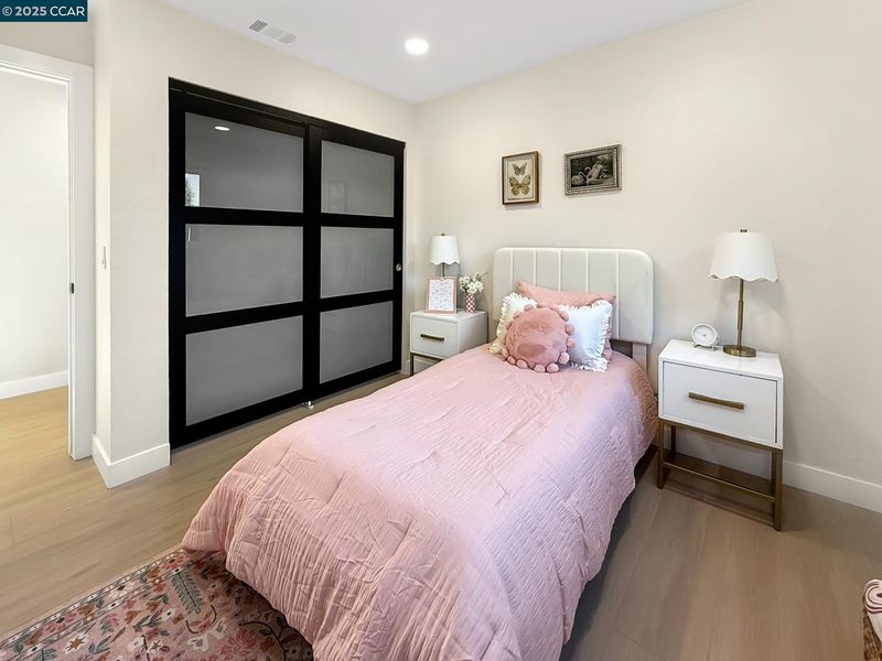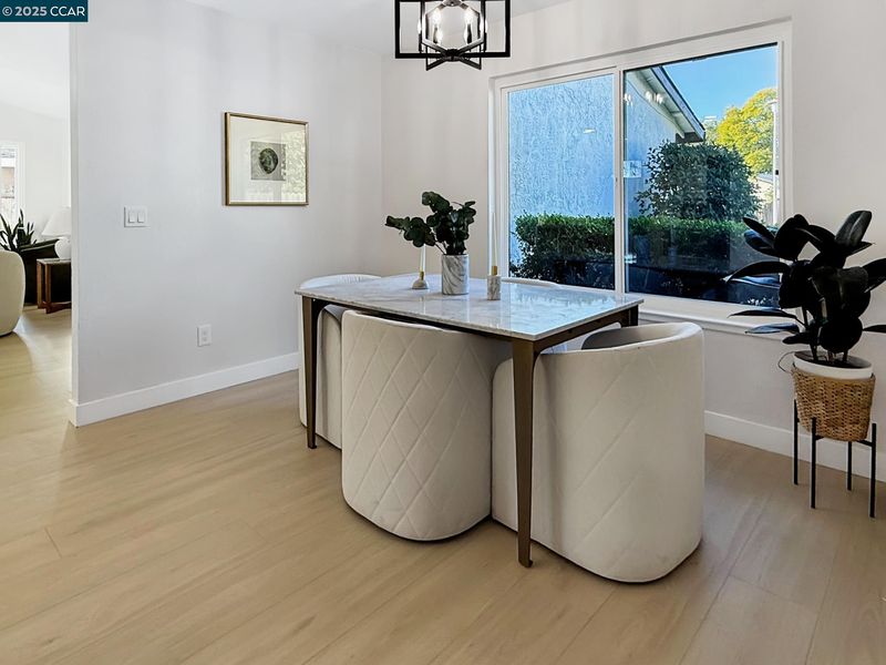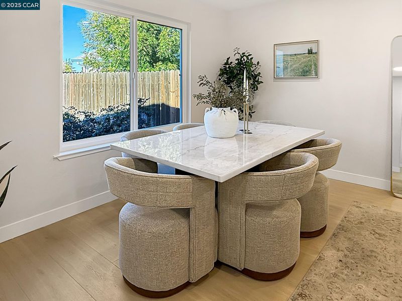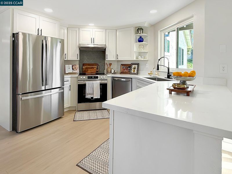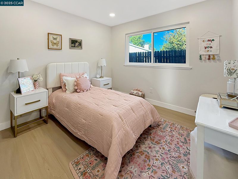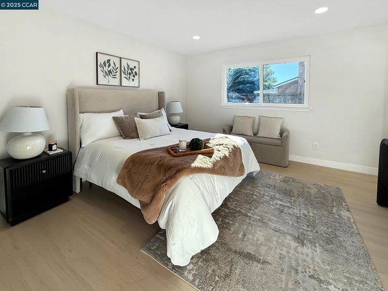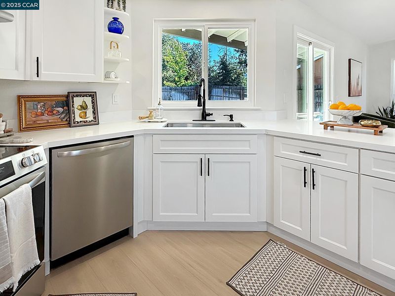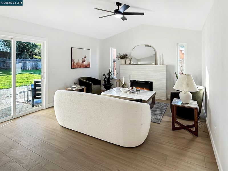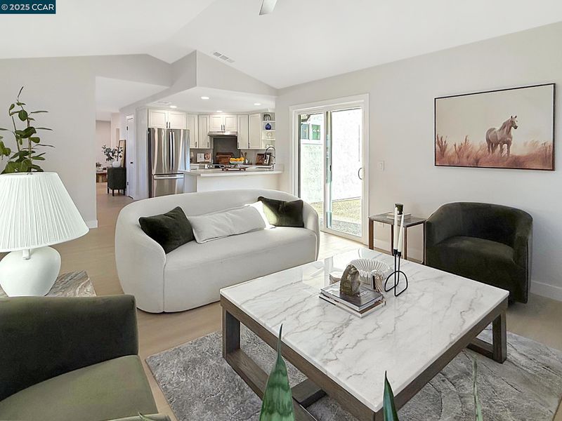 Beautiful single level home with open floor plan and modern finishes. The kitchen features white cabinetry, quartz countertops, and stainless-steel appliances. Dedicated Living, Family and dining areas offer great natural light. Primary bedroom includes a walk in closet and updated bathroom. New flooring, fresh interior and exterior paint, and recessed lighting throughout. Room to expand with this large backyard with patio and grass area, perfect for easy outdoor use. Finished two car garage with epoxy floors and storage space. Located near schools, shopping, and parks with easy freeway access. Move-in ready and updated throughout.