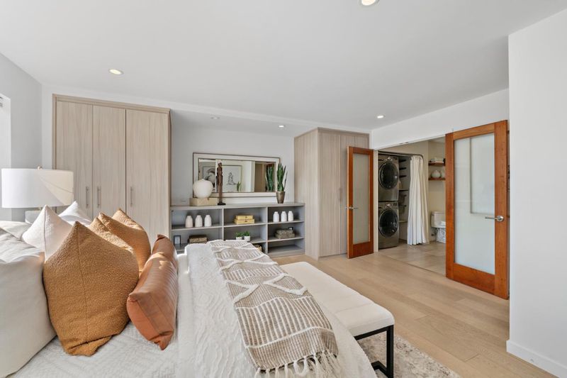 Beautifully reimagined with a stunning remodel in 2015. This sophisticated and contemporary condominium showcases premium craftsmanship and modern design ~ Nestled on a peaceful stretch of Bryant Street just three blocks from the energy of University Avenue. This residence offers light-filled interiors with wide-plank hardwood flooring, expansive floor-to-ceiling windows, and thoughtful details such as zoned radiant heat, motorized window shades, and integrated living-room speakers. The sleek chefs kitchen features custom cabinetry paired with Miele, Wolf, and Sub-Zero appliances. A retractable partition allows the dining area to convert into a private guest suite or expanded living space. The spacious primary bedroom includes custom built-ins and an adjoining bonus room ideal for a home office or nursery. Additional amenities include an in-unit washer and dryer, two secure underground parking spaces, and a dedicated storage closet. Perfectly positioned near Heritage Park, Whole Foods, the Caltrain station, and within the top-rated Palo Alto school district!