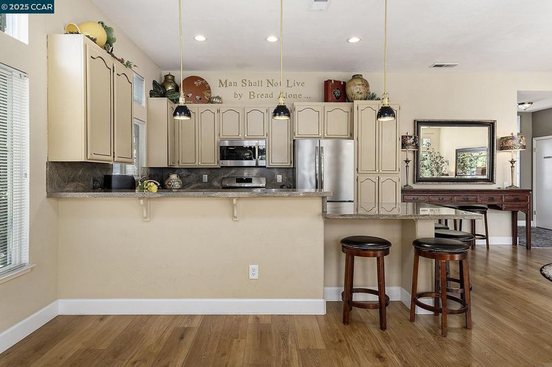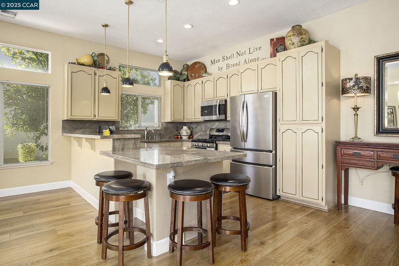 - Dishwasher, Gas Range, Microwave, Free-Standing Range, Refrigerator, Water Softener, Breakfast Bar, Stone Counters, Eat-in Kitchen, Gas Range/Cooktop, Range/Oven Free Standing, Updated Kitchen