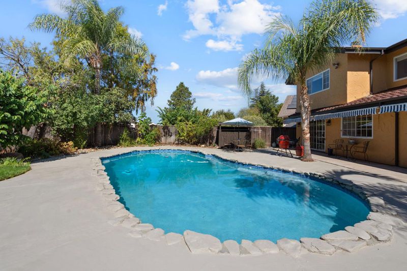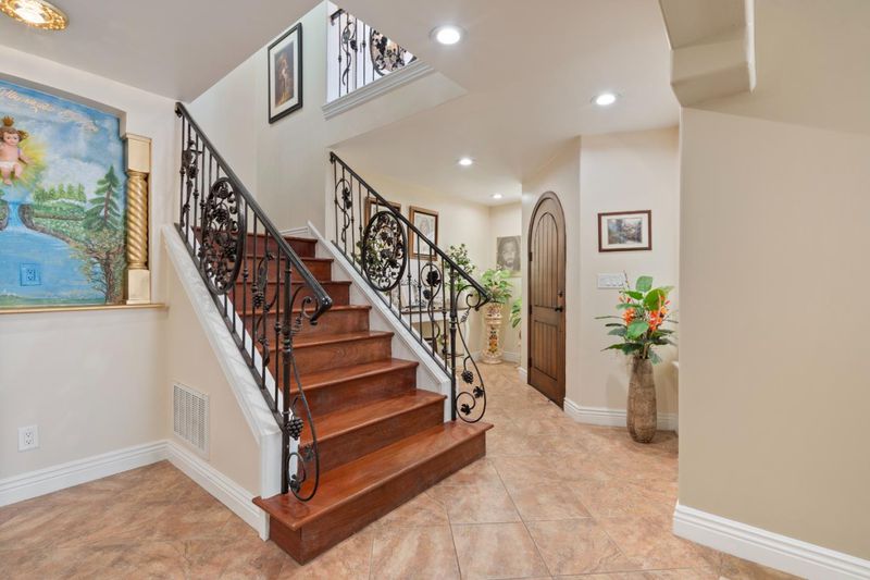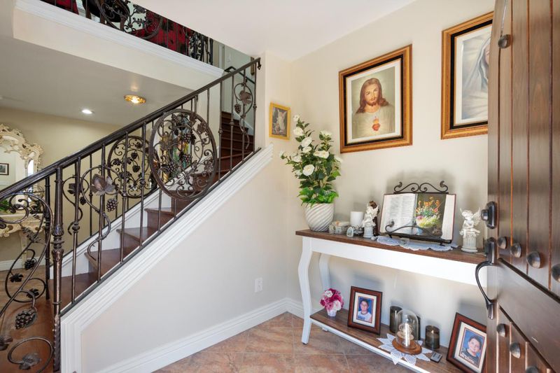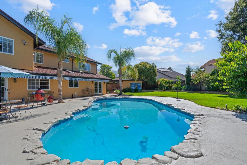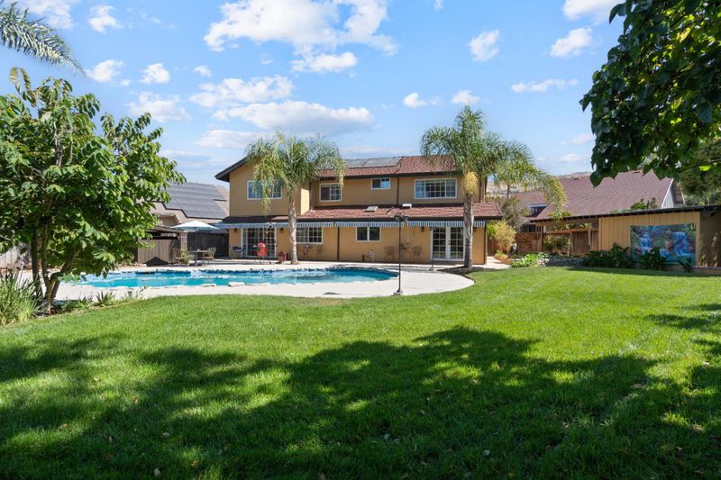 This Beautiful Semi-Custom home finished building in 2006. Offers an abundance of natural light and a spacious open floor plan, sits on a large lot of 10,620 sf, Large home of 3,610 sf, 4 large bedrooms, a master retreat suite with a walking closet, 2.5 baths,1 Great Play- theater- room, with high ceilings and wood walls all around, Glass stain double doors, elegant hardwood floors, stylish recessed lighting with day light/ night light, must see, lots of upgrade's done to this home, even has radiant floors in some areas, so in the winter you can walk barefoot. If you like to feel like a chef, this kitchen has everything you need, this home exudes warmth and sophistication, Freshly custom painted interiors enhance its bright and airy ambiance. In the back yard you will find a nicely done workshop, with permits, clean inground pool, Lush green grounds, with lots of different fruit trees, feels like a resort, the backyard provides ample space for entertaining, outdoor dining, and relaxation, very private and peaceful, you will feel like you are in vacation. Enjoy breathtaking mountain views from the house balcony. Conveniently located within walking distance to Parks, Highly Rated schools, including the assigned Evergreen Valley High School. Come Visit and make this your new home.
