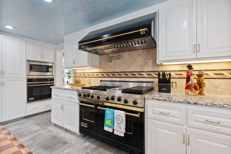 - Cooktop - Gas, Countertop - Granite, Dishwasher, Garbage Disposal, Hood Over Range, Ice Maker, Island, Microwave, Oven - Electric, Oven - Gas, Refrigerator, Skylight, Trash Compactor, Warming Drawer, Wine Refrigerator