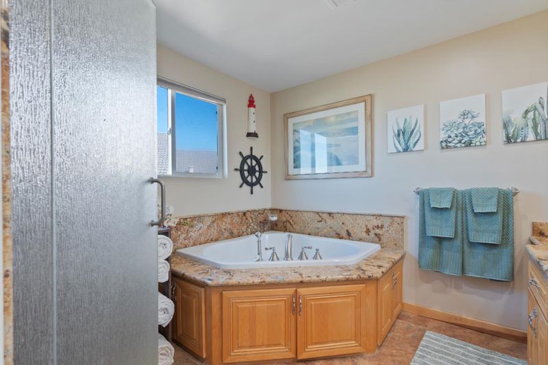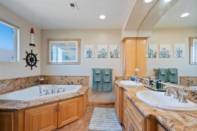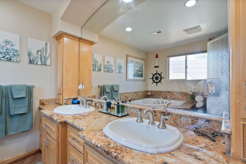 - Bidet, Double Sinks, Granite, Half on Ground Floor, Primary - Oversized Tub, Primary - Stall Shower(s), Primary - Tub with Jets, Shower over Tub - 1, Tile, Updated Bath