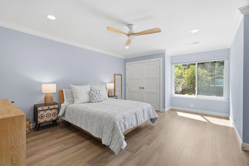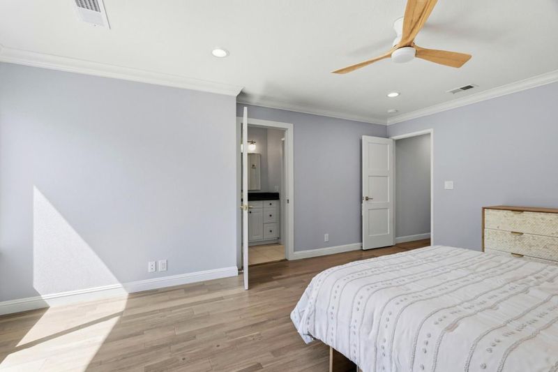 Welcome to this stunningly updated home with over 350k in permitted upgrades, set on a quiet cul-de-sac with adjacent walking path and views of the Santa Teresa foothills. Curbless shower and luxurious finishes await in the fully remodeled downstairs bath. 1st floor bedroom perfect for WFH office or guests with private entrance from new Trex deck. Effortlessly entertain in the kitchen and living areas featuring formal living and dining space, breakfast nook, and chefs kitchen with granite countertops and new Kitchen Aid appliances. Spacious primary suite offers updated reach-in and walk-in closets with custom cabinetry. Canned lighting & updated fixtures throughout, expanded laundry room with custom cabinetry, new doors, exterior lights, and whole house repaint in 2025. Flooring features updated hardwood, stone, and travertine, complementing the vaulted, high ceilings with motorized skylight. Energy-efficient features and amenities include 3 entirely new HVAC systems, solar power, double paned windows, 3-car garage with Level 2 electric vehicle hookup, and stamped concrete patio perfect for relaxing or entertaining. Come take a look!