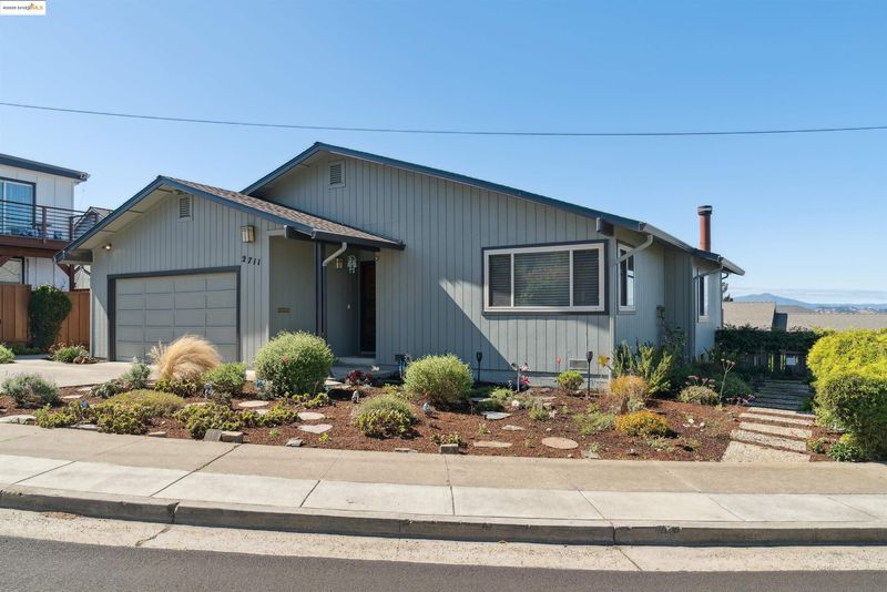 Welcome to beautiful 2711 Tulare Avenue in the desirable Mira Vista neighborhood of El Cerrito. This impeccably maintained Ranch-style home has it all! Three bedrooms & 2 full baths - including a spacious primary suite - plus an expansive living room. The updated kitchen is a standout, flowing seamlessly into the large adjacent family room with a fireplace. Enjoy formal meals at the dining room table or a cafe-style nosh at the kitchen counter. Throughout the main area, you'll find gleaming hardwood floors. Cozy wall-to-wall carpeting in the bedrooms. Tons of closet space! Need more? How about an ADU? There's a bedroom & bath downstairs with a separate entrance. Covered deck, perfect for enjoying gorgeous sunsets. Large, private landscaped yard with colorful, pollinator-friendly plants & veggie beds; ideal for gardening, entertaining, or simply relaxing! Two-car garage with laundry & interior access. Close to shopping, schools, parks & transportation. You will fall in love with this home!