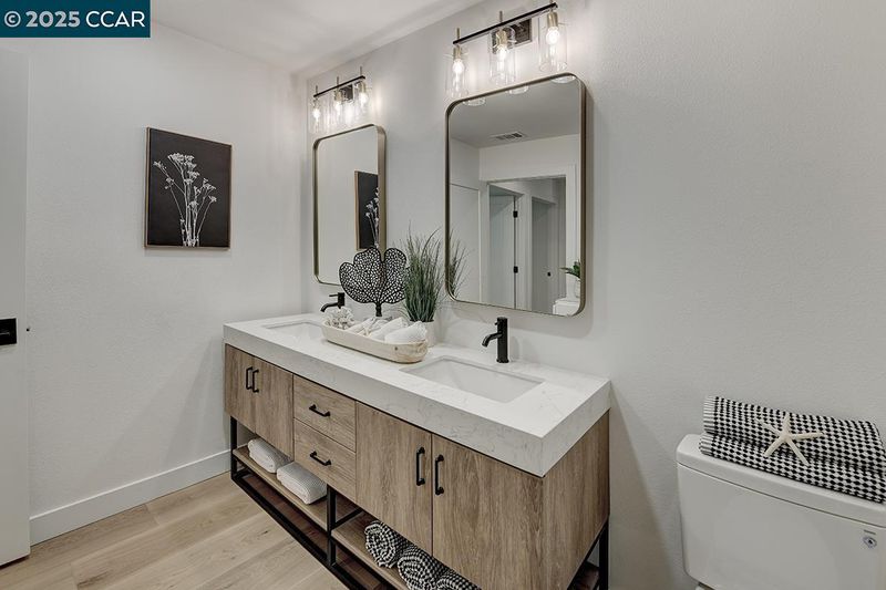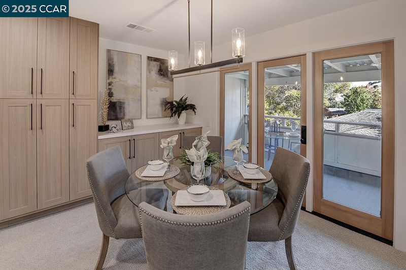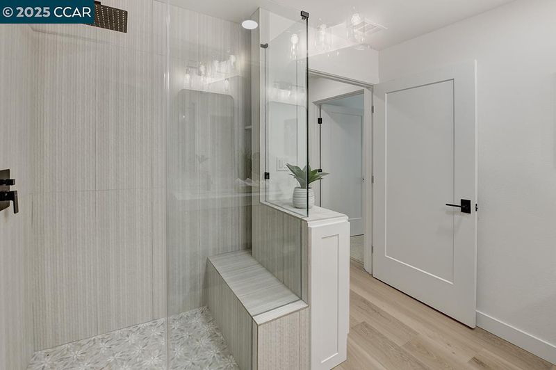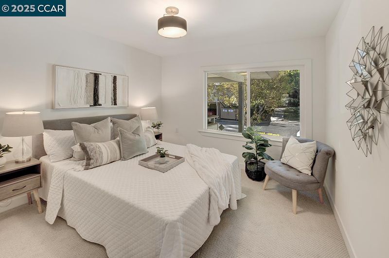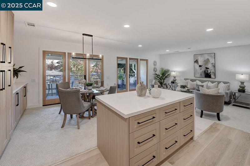 Experience this one-of-a-kind Saratoga remodel, completely reimagined from the studs up with high-end modern designer finishes throughout. Great room feel living area boasting electric fireplace with custom built-in shelving on either side and dining area featuring additional built in storage, The stunning kitchen showcases custom cabinetry, quartz countertops, and a striking waterfall-style island, perfect for entertaining. The spa-inspired bathroom features a custom tile and glass shower with a rain showerhead, built-in seating, and shelving, complemented by a dual-sink vanity. Enjoy modern comforts with new HVAC, wiring, plumbing, dual-pane windows, and French doors opening to a serene deck overlooking the Rossmoor Valley. Every detail has been thoughtfully curated—from custom lighting and new flooring with upgraded baseboards, to new front and interior doors with premium hardware. Includes full-size washer and dryer to complete this exceptional home. A rare opportunity to own a fully rebuilt, move-in-ready Saratoga gem!!