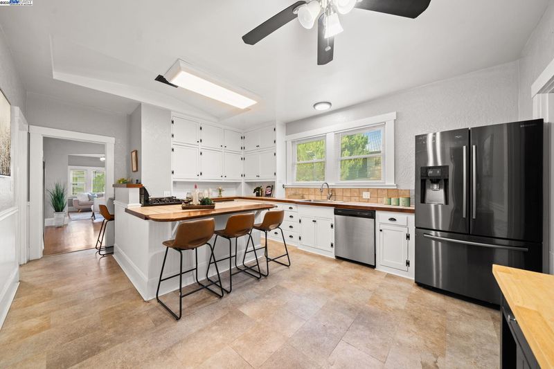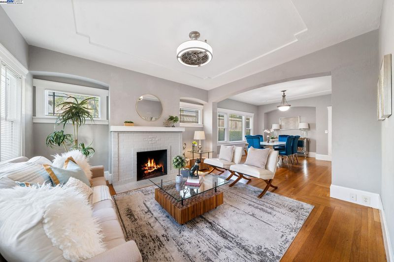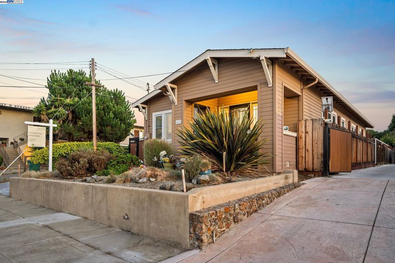Located in the heart of historic Hayward, this beautifully updated Craftsman home blends timeless character with modern comfort. Situated on an expansive 8,000 sq. ft. lot, it features a drought-resistant front yard, inviting covered porch, and an oversized 2.5-car garage. Inside, natural light fills the spacious living room with tray ceilings, a brick fireplace, and arched doorways. Hardwood floors lead through the dining area to a bright, updated kitchen complete with new appliances, white cabinetry, and a breakfast bar. The home offers three bedrooms with walk-in closets, two updated bathrooms, and a convenient laundry room. The large backyard is perfect for entertaining, relaxing under the covered patio, or creating your dream outdoor space. Ideally located near downtown Hayward’s shops, restaurants, and BART, this home offers the perfect balance of charm, functionality, and convenience.