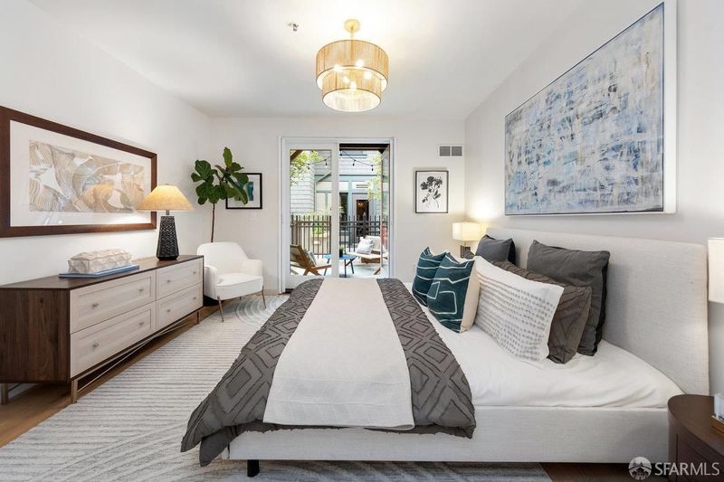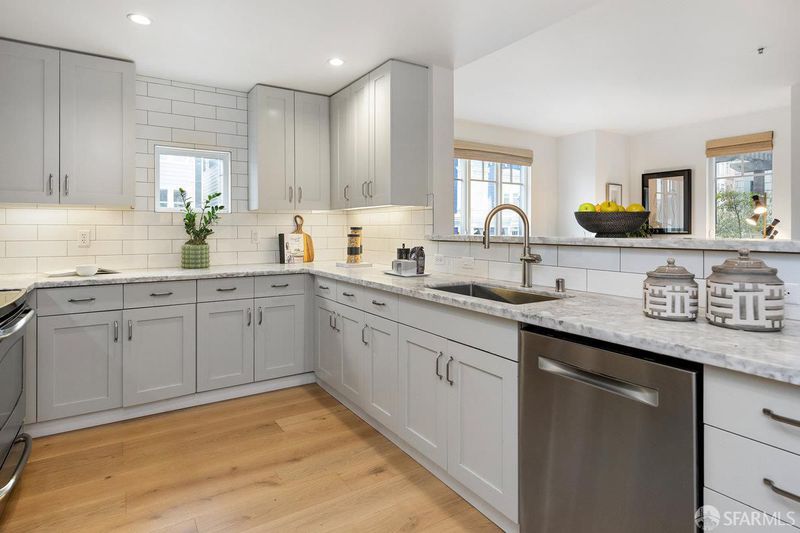 Welcome to this beautifully renovated corner residence at Broderick Place, where natural light pours in from multiple exposures, and modern design meets everyday comfort. This 2 bed, 2 bath condo offers a thoughtful floor plan, luxury finishes, and a private terrace - perfect for indoor-outdoor living. Step inside to wide-plank white oak floors, custom window treatments, and elegant finishes throughout. The open-concept living/dining areas flow seamlessly together, creating an inviting space for entertaining. A beautifully remodeled chef's kitchen anchors the space, featuring marble countertops, a subway tile backsplash, stainless steel appliances, counter seating, and generous storage. The primary suite is a quiet urban retreat, complete with direct access to the terrace, a spa-like en-suite bath with a walk-in shower, and a spacious walk-in closet. The second bedroom is ideally positioned on the opposite side of the unit for added privacy. The adjacent bathroom has been updated with a sleek soaking tub and glass enclosure. Completing this incredible home is in-unit laundry and 1 car pkg. Located at the intersection of multiple vibrant neighborhoods with access to Faletti's, Bi-Rite, the Panhandle, the Divisadero corridor, Alamo SQ Park, and some of the city's best restaurants.