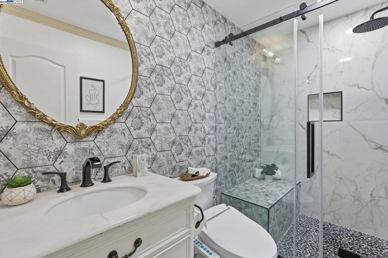 - Bidet, Shower Over Tub, Solid Surface, Tub, Updated Baths, Window