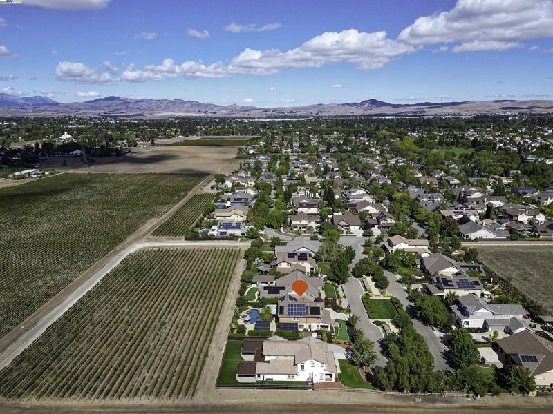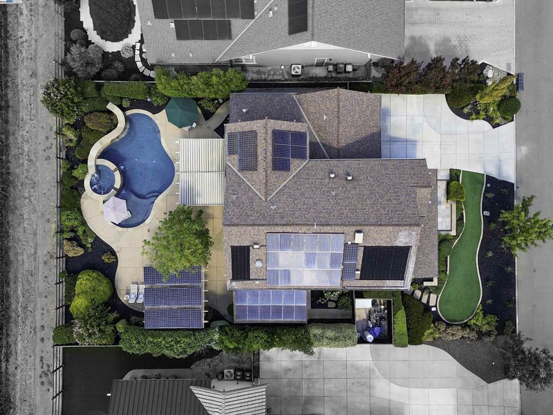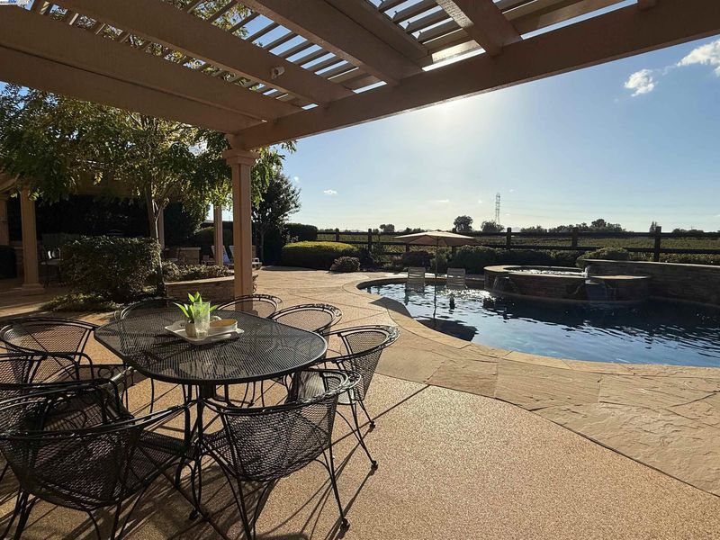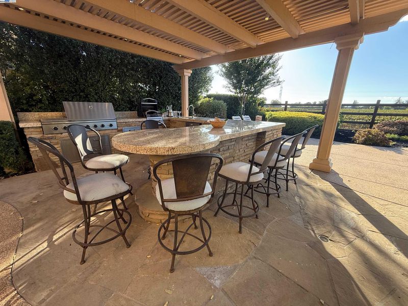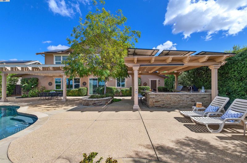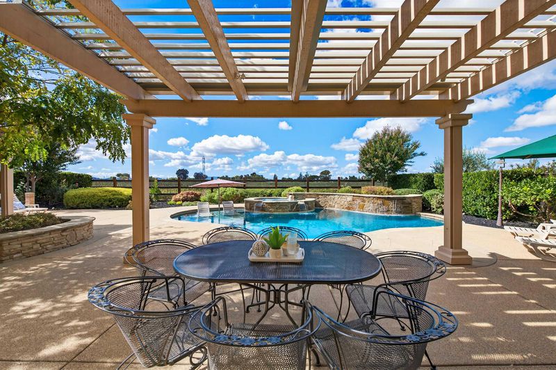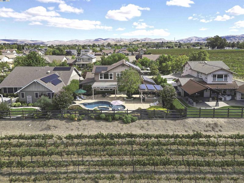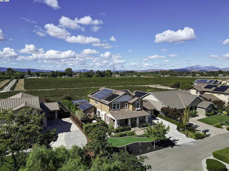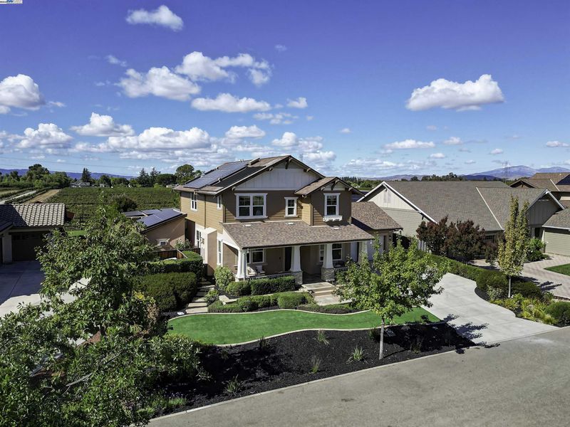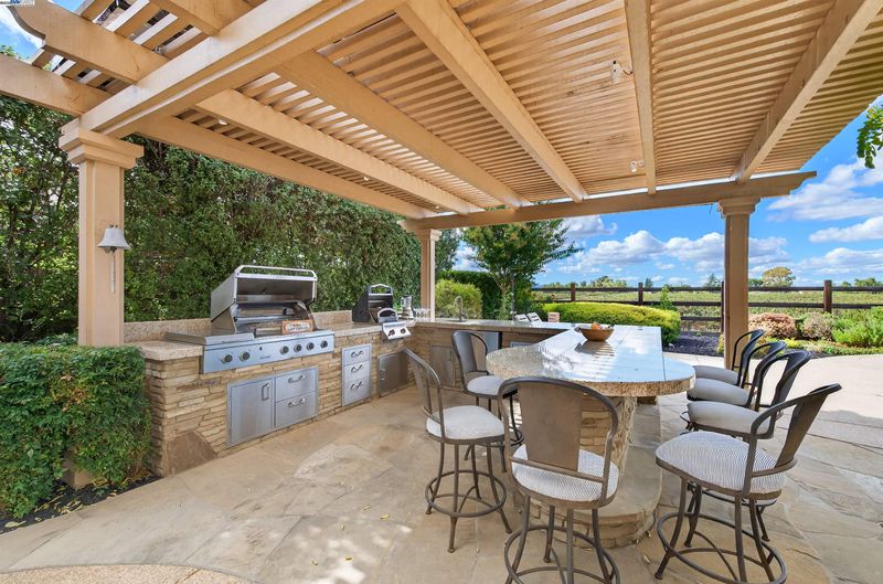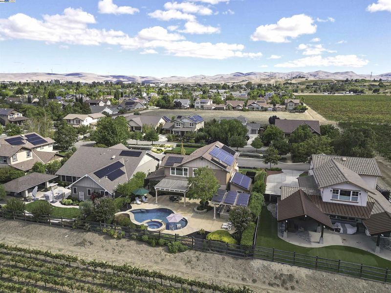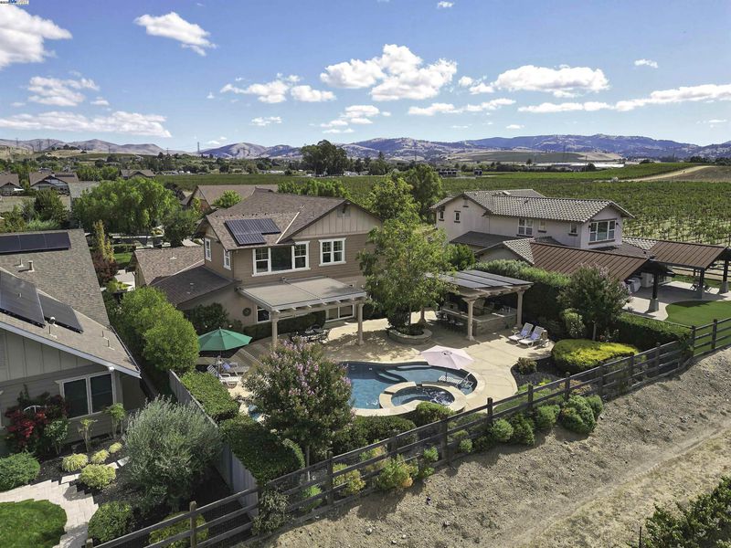 LOCATION, LOCATION, LOCATION! Don't miss this rare property with UNOBSTRUCTED 360° VINEYARD VIEWS. From the moment you step through the front door you’re greeted by sweeping panoramas of Livermore’s iconic wine country. This tech forward home features OWNED ELECTRIC solar with 2 Tesla Power walls, OWNED POOL SOLAR, and wi-fi enabled controls to irrigation, HVAC and security systems. The backyard is a private resort oasis, showcasing a lagoon-style pool & spa, and full outdoor kitchen complete with built-in BBQ, pizza oven, refrigerator, sink and large bar. You can sit back and relax under the motorized pergola and enjoy outdoor living at its finest with a fully permitted backyard bathroom, temp. controlled bonus room, and 498 sq ft of covered patio's. You will not want to miss the chef inspired kitchen with Wolf range, pot filler, wine fridge and oversized island with leathered finish. Functional floor plan with 1 BED & BATH DOWNSTAIRS, upstairs laundry, office area and oversized open loft or 5th bedroom. Retreat to primary suite with expansive built-in closet cabinets and stunning views of vineyards and hills!! Garage is fully finished with epoxy floors, and abundant storage racks and tool cabinet. DO NOT MISS THIS ONE OF A KIND ONE OWNER HOME!!!
