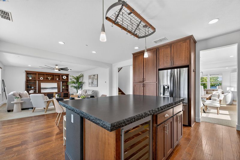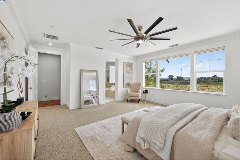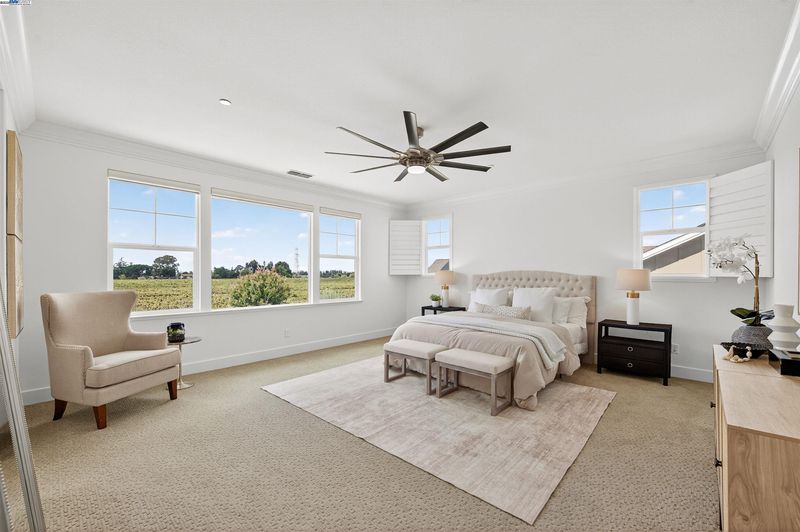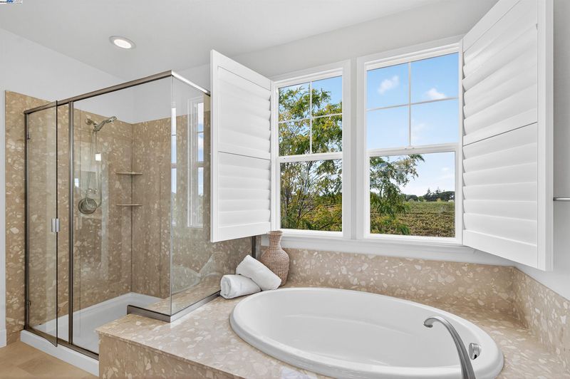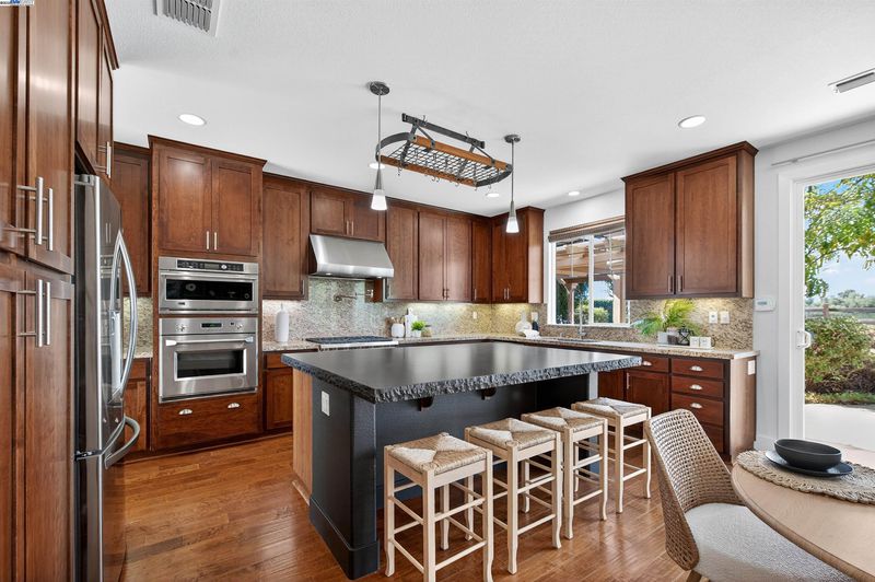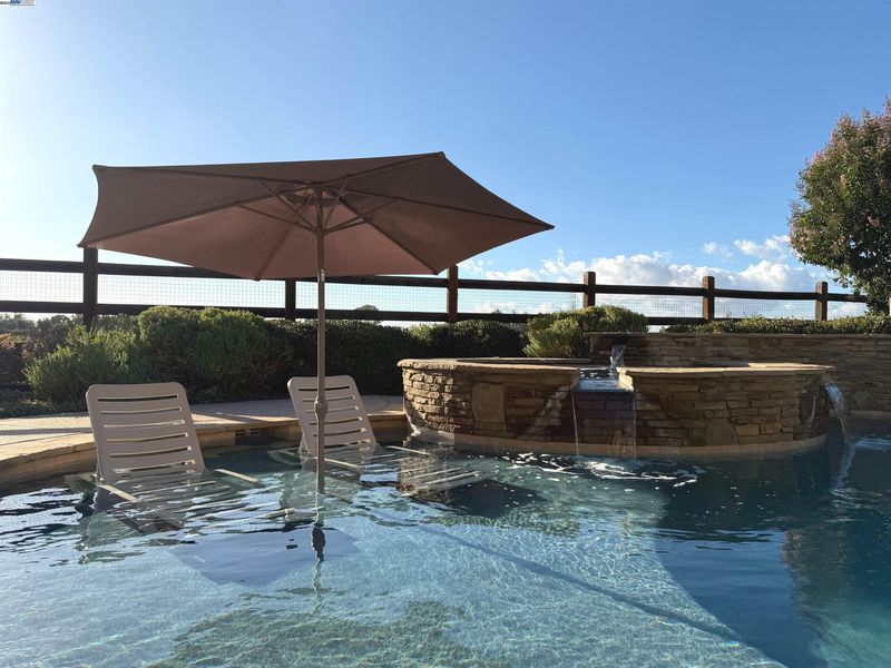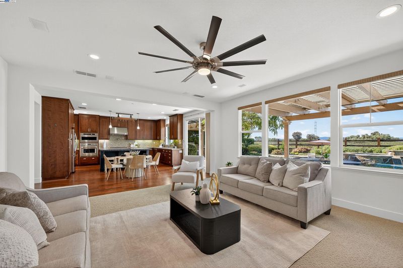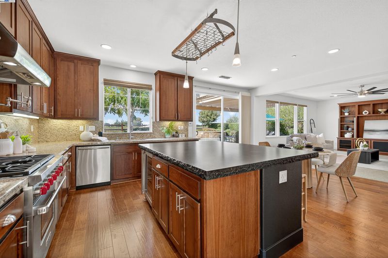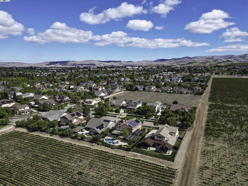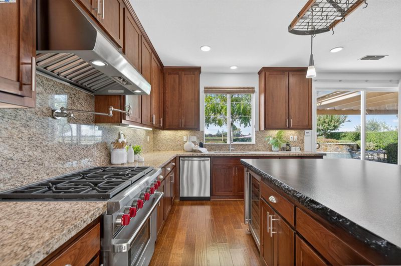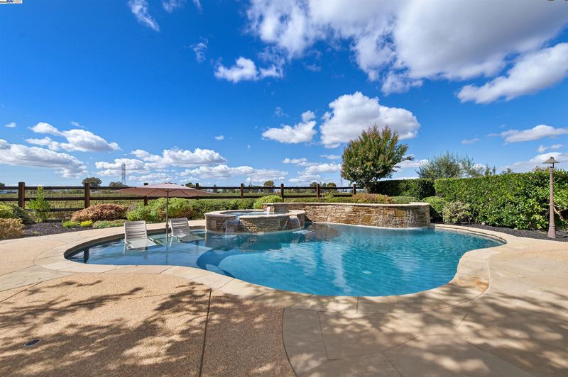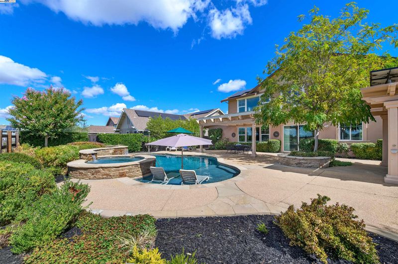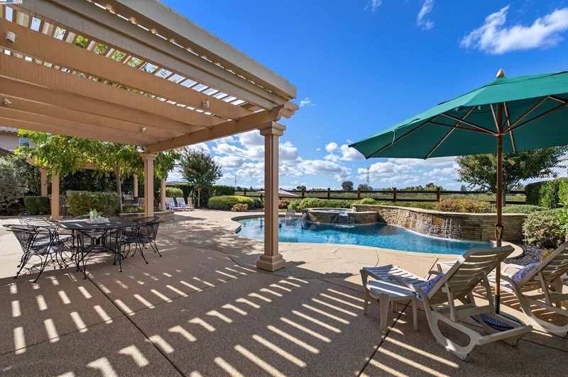LOCATION, LOCATION, LOCATION! Don't miss this rare property with UNOBSTRUCTED 360° VINEYARD VIEWS. From the moment you step through the front door you’re greeted by sweeping panoramas of Livermore’s iconic wine country. This tech forward home features OWNED ELECTRIC solar with 2 Tesla Power walls, OWNED POOL SOLAR, and wi-fi enabled controls to irrigation, HVAC and security systems. The backyard is a private resort oasis, showcasing a lagoon-style pool & spa, and full outdoor kitchen complete with built-in BBQ, pizza oven, refrigerator, sink and large bar. You can sit back and relax under the motorized pergola and enjoy outdoor living at its finest with a fully permitted backyard bathroom, temp. controlled bonus room, and 498 sq ft of covered patio's. You will not want to miss the chef inspired kitchen with Wolf range, pot filler, wine fridge and oversized island with leathered finish. Functional floor plan with 1 BED & BATH DOWNSTAIRS, upstairs laundry, office area and oversized open loft or 5th bedroom. Retreat to primary suite with expansive built-in closet cabinets and stunning views of vineyards and hills!! Garage is fully finished with epoxy floors, and abundant storage racks and tool cabinet. DO NOT MISS THIS ONE OF A KIND ONE OWNER HOME!!!