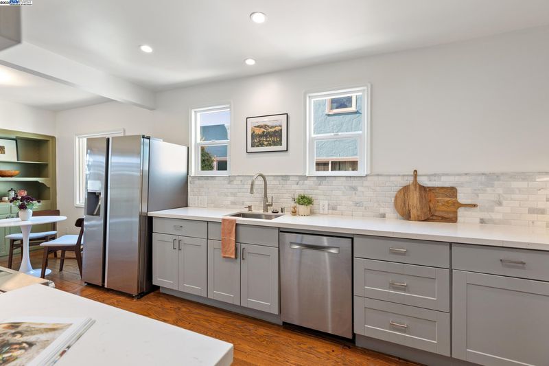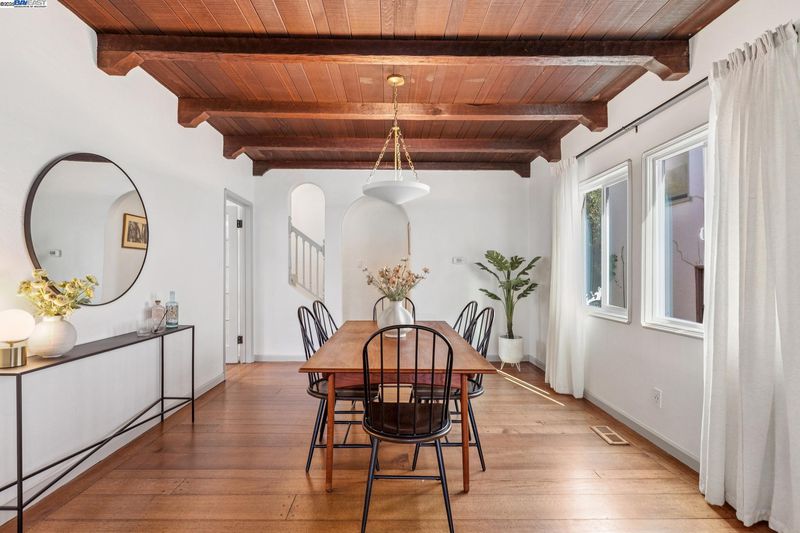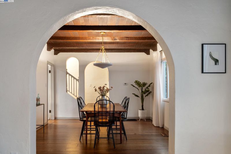 2829 Otis is a tastefully updated Mediterranean Split-level Bungalow located in the coveted East End of Alameda just a ½ block from Otis Elementary School. Built in 1930, this 3 bedroom, 2 bath 1869 sqft. home possesses the ideal blend of Vintage Charm and modern updates. Lovingly maintained details include:clay tile roof, original hardwood floors, dark wood ceilings, arched windows/doorways, terracotta tile flooring & much more. The Living room with custom marble tiled fireplace and large arched picture window is an inviting area for gatherings and repose. This area flows into the formal Dining Room with more wood ceiling details and stunning chandelier. An updated kitchen with stainless steel appliances has marble tile backsplash and charming eat-in area with original built-in. Upstairs, an updated bath with original tile floors is flanked by 2 spacious, light filled bedrooms each with generous closets. Lower floor: bonus bedroom overlooking the lush backyard, updated full bath, separate office/hangout.