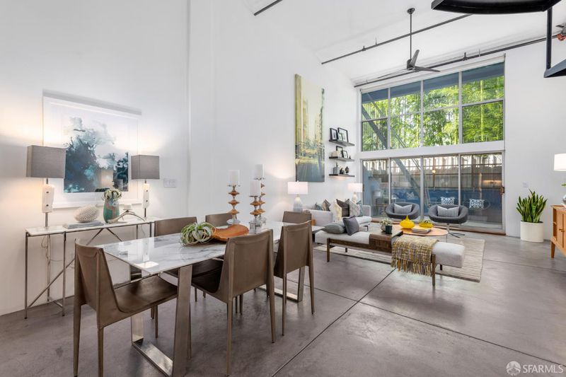 At the crossroads of three dynamic neighborhoods - Dogpatch, Mission Bay, and Potrero Hill - this spacious live/work loft delivers the best of modern city living. Quietly positioned on the serene rear side of the building, it blends urban energy with comfort, privacy, and style. The entry level welcomes you with a convenient hallway closet or pantry, stacked washer/dryer, and spacious half bath, opening into a sleek kitchen outfitted with newer stainless steel appliances. The expansive great room showcases soaring ceilings and an open, light filled layout - the quintessential loft experience! Step outside to your private patio, complete with wooden shelving, ready for a home garden, living wall, or other creative endeavor. Up the spiral staircase, the loft level features generous closet space and a full bath, creating a functional and inviting retreat. One deeded parking space is included in the secure garage. Enjoy unmatched access to the best of the city: Caltrain/T-Line, Chase Center, Crane Cove Park, Esprit and Mariposa Parks, a state-of-the-art fitness studio on Pennsylvania, and a vibrant mix of dining and entertainment along the 3rd Street corridor. Buyer advised to test car in parking spot. Urban convenience meets inspired living placing you right at the center of it all!