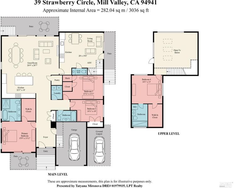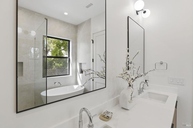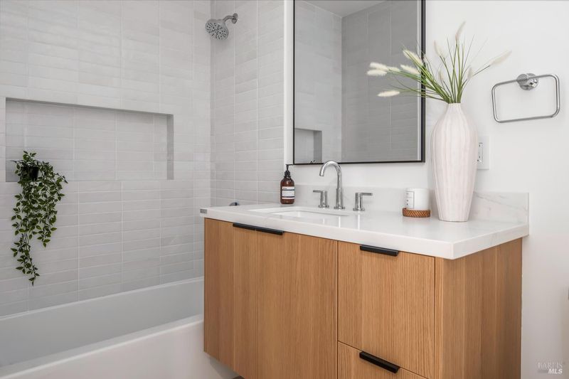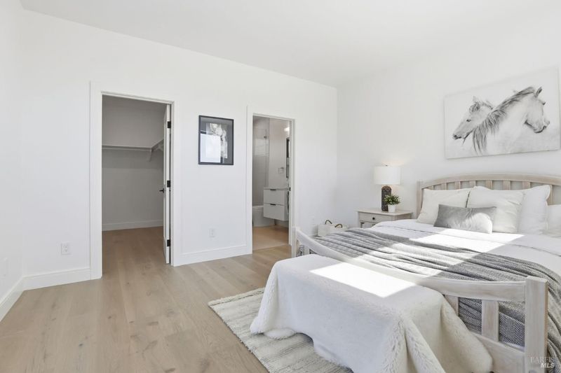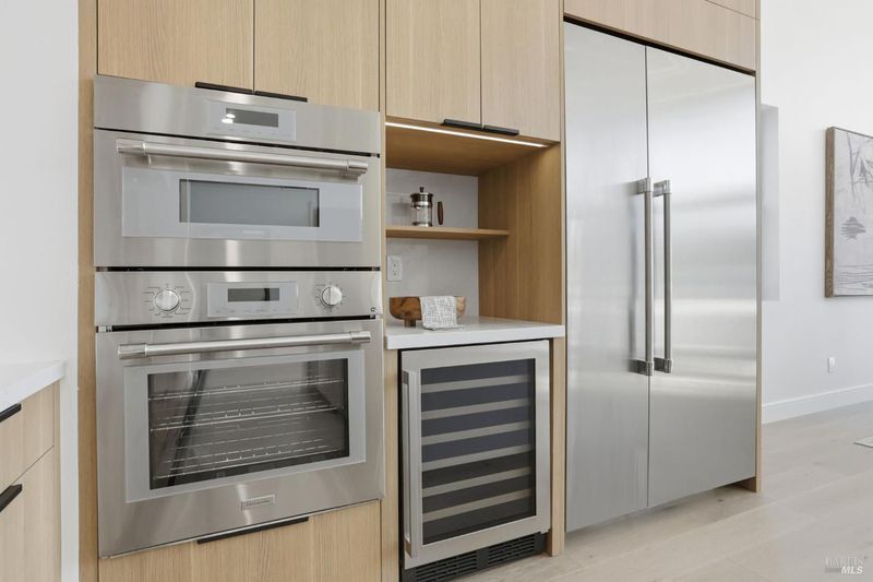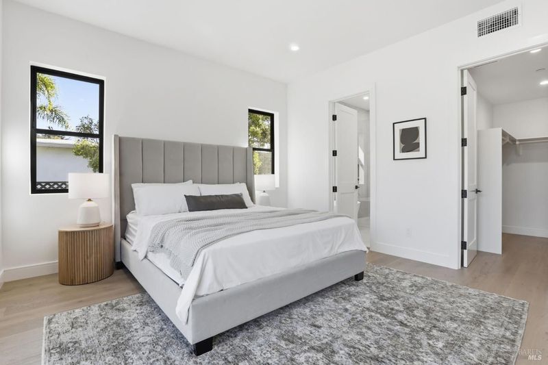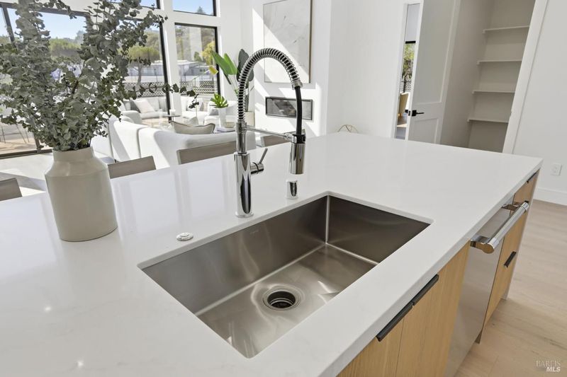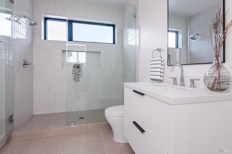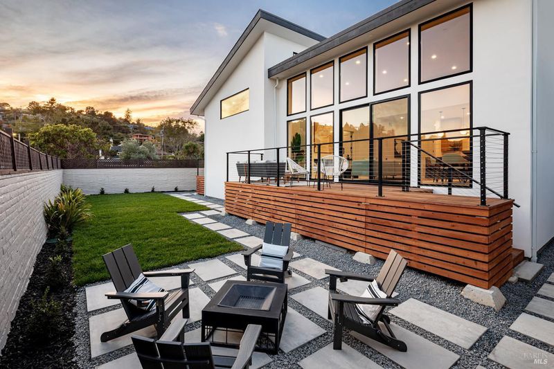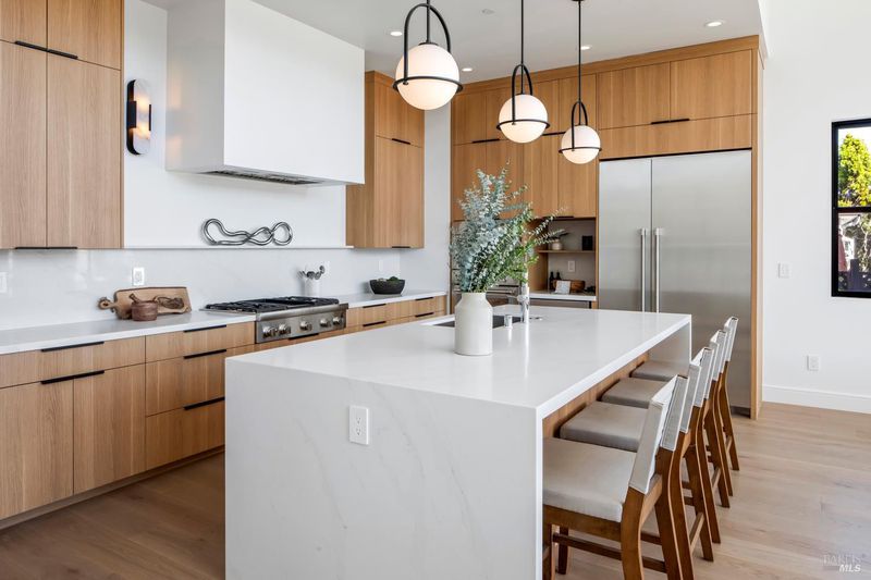 Enjoy luxury living in this stunning modern home, beautifully rebuilt from the ground up in 2025 and located in Mill Valley's coveted Strawberry neighborhood. Designed for comfort and style, it features soaring ceilings, tall custom windows, wide hallways, abundant natural light, European white oak floors, and custom cabinetry throughout. The single-level main home offers three bedrooms and two baths, while an attached one-bedroom, two-bath ADU provides exceptional flexibility with both private and interior access, ideal for guests, extended family, or a home office. Together, they create a versatile four-bedroom, four-bath layout with generous living spaces. The gourmet kitchen showcases Thermador appliances, a double oven, a large refrigerator and freezer, an oversized island, and a walk-in pantry. The elegant living room with a linear gas fireplace flows into the dining area and opens to a spacious deck and landscaped backyard with lawn, perfect for entertaining. The primary suite offers a spa-style bath with soaking tub, glass shower, walk-in closet, and private deck. Close to trails, schools, recreation, downtown Mill Valley, and Tiburon.