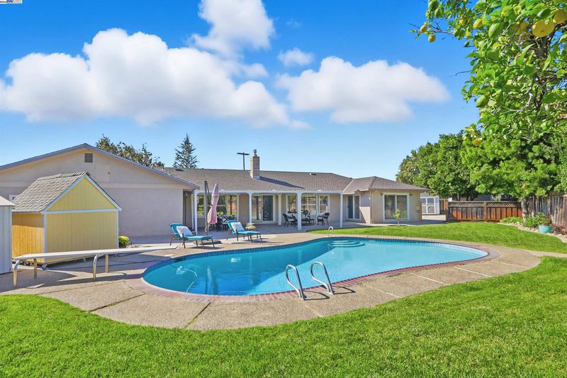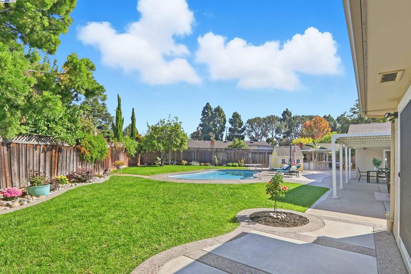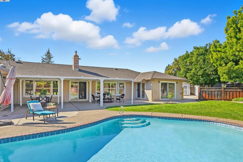 Tucked into a charming cul-de-sac in the sought-after Glenmoor neighborhood, this stunning home offers a rare combination of a sprawling lot, expansive floor plan and unbeatable location! Filled with natural light, this thoughtfully designed single-story home has picturesque yard views around every corner. The beautifully remodeled kitchen features granite counters, custom cabinetry & stainless steel appliances including a gas stove. Quality details throughout: central AC, updated bathrooms, recessed lighting & dual-pane windows. One of the home’s most versatile features is a spacious attached suite with its own private entrance, kitchen, bedroom, bathroom & backyard access—ideal for multi-generational living, guests or a potential JADU. Situated on an approx 13,391 sqft lot, the yard is built for entertaining with a swimming pool, lush lawn and an outdoor kitchen equipped with a grill, fridge, large TV & fire pit bar. This sizable lot also has a playhouse, 2 large storage sheds, RV access & space for a potential ADU or expansion. This one-of-a-kind home is ideally located near great schools, parks, shopping & local eateries. Perfect for commuters, nearby 880, Dumbarton Bridge, BART & Centerville Station. Don’t miss your chance to call this rare Glenmoor home yours!