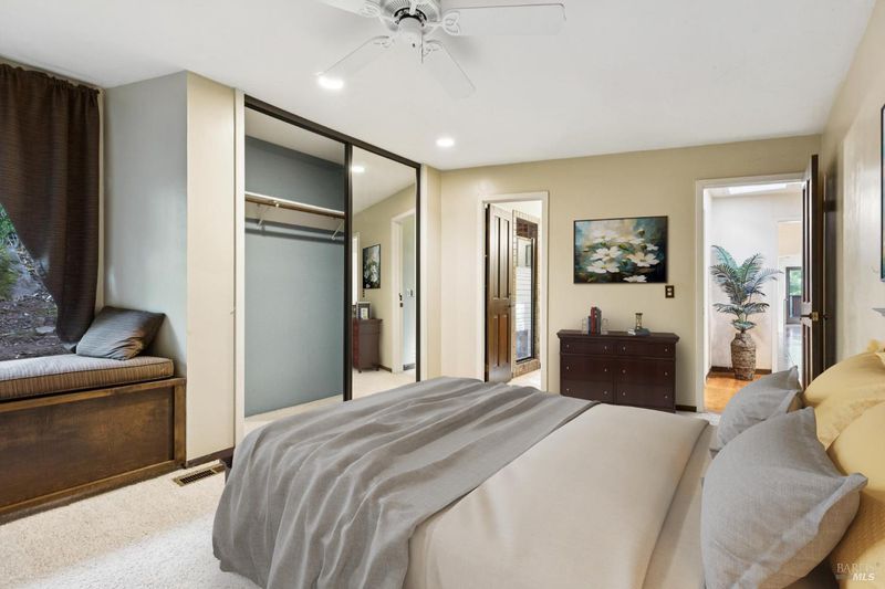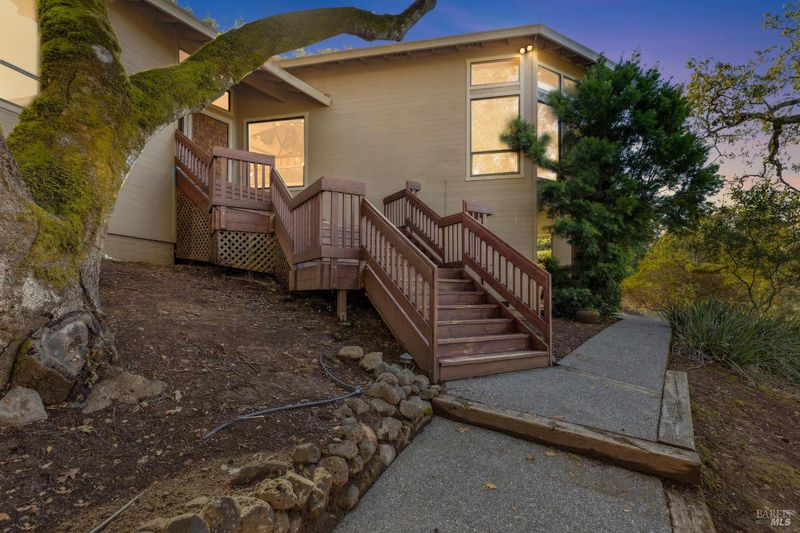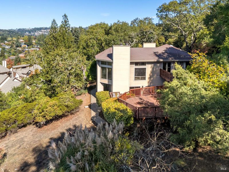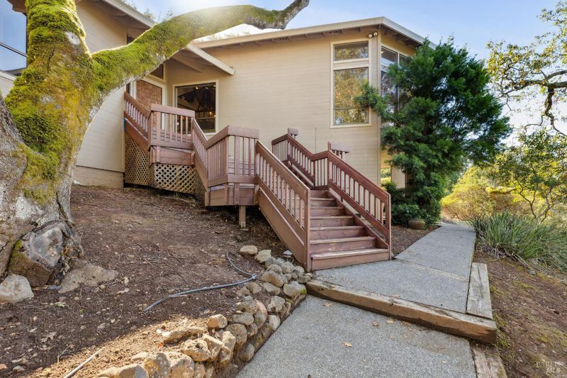 Behind a private gate at the end of a serene street, this custom 1981 residence exudes timeless potential, offering commanding, panoramic vistas of Sonoma County's rolling landscape. Perfectly positioned above Hidden Valley and neighboring Montecito Heights, the property strikes an ideal balance between tranquil seclusion and proximity to downtown Santa Rosa. Inside, finely crafted millwork and original cabinetry showcase enduring artistry, while expansive picture windows illuminate the great room and frame the sweeping views beyond. The multi-level design includes a voluminous great room with built-ins and fireplace, a formal dining room crowned with vaulted ceilings and wet bar, and a chef's kitchen with generous pantry and charming breakfast nook. The lower-level primary suite opens to its own private deck -- an inviting retreat for sunrise coffee or sunset wine. The en suite is complete with dual vanities, soaking tub, walk-in shower, and a substantial wardrobe with built-in dresser and shoe rack. Multiple viewing decks, three fireplaces, and a versatile office or fourth bedroom completes this distinguished home awaiting a visionary refresh in one of Santa Rosa's most coveted settings.