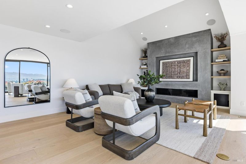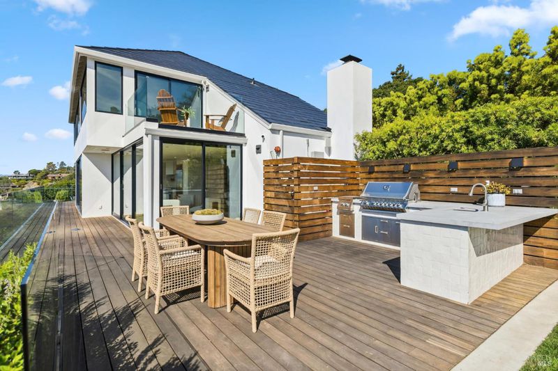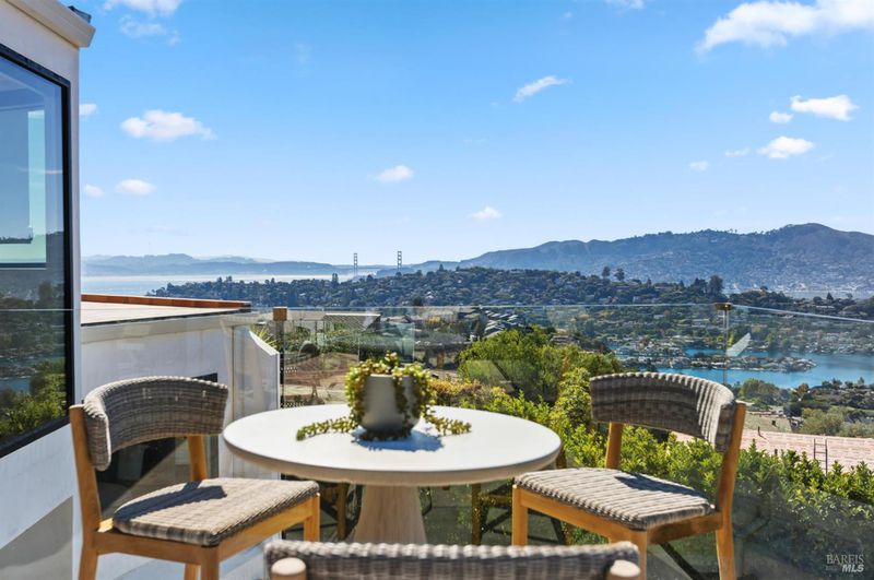 Set on a quiet cul-de-sac, this impeccably remodeled Tiburon residence captures the essence of modern California living with unobstructed views of the Golden Gate Bridge, the San Francisco Bay, and Mt Tamalpais from nearly every room. Fleetwood sliding glass doors create seamless indoor-outdoor flow, inviting the landscape and light into every space. A gated driveway offers privacy and security, while the Tesla solar roof with backup battery storage provides energy efficiency and peace of mind. Designed for entertaining, the home features a sophisticated bar and a dedicated theater roomperfect for movie nights or hosting guests in style. Each bedroom enjoys its own stunning vantage point, with refined finishes and thoughtful details throughout. Every element of 2 Audrey Court reflects quality, comfort, and contemporary design in one of Marin's most sought-after locations. A rare opportunity to experience Tiburon living at its very best.