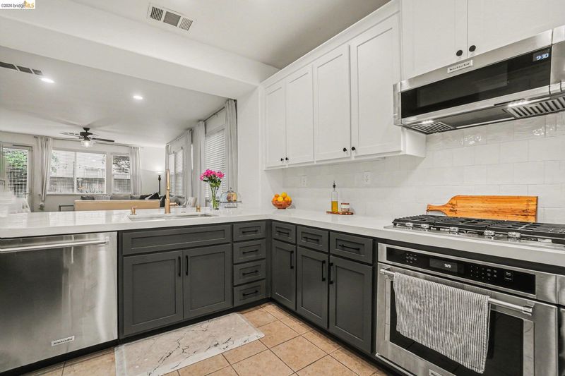Microwave, Range, Refrigerator, Dryer, Washer, Gas Water Heater, Breakfast Bar, Counter - Solid Surface, Range/Oven Built-in, Updated Kitchen