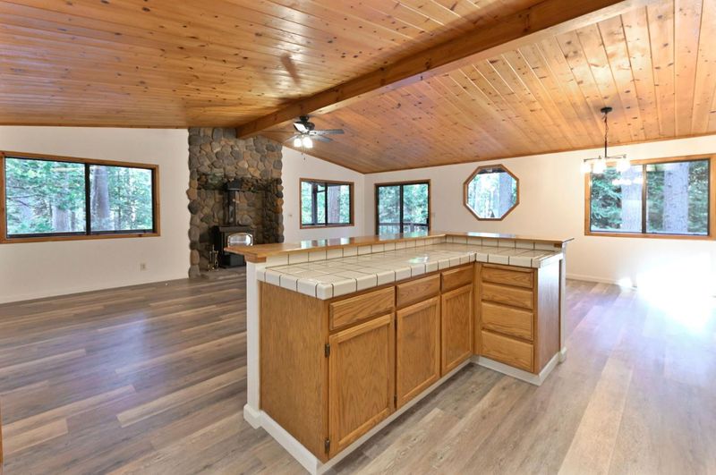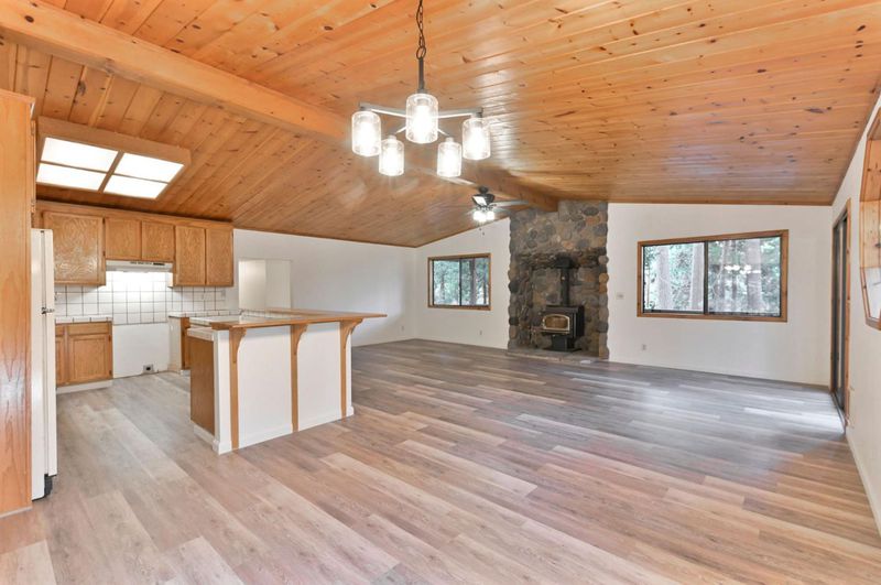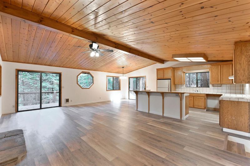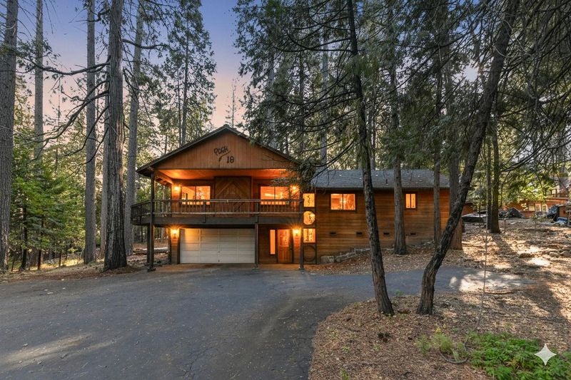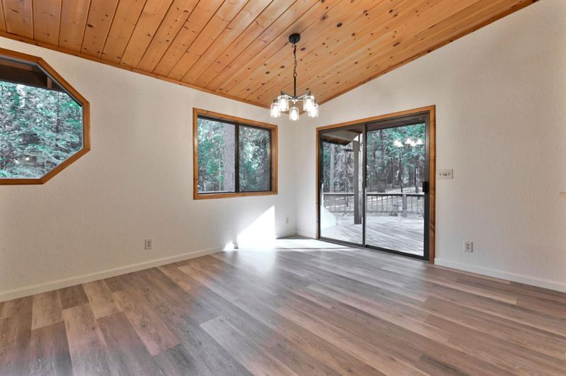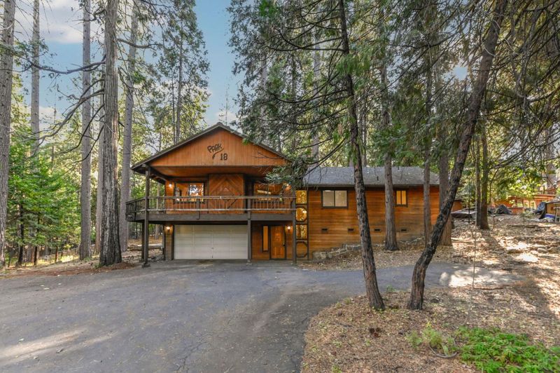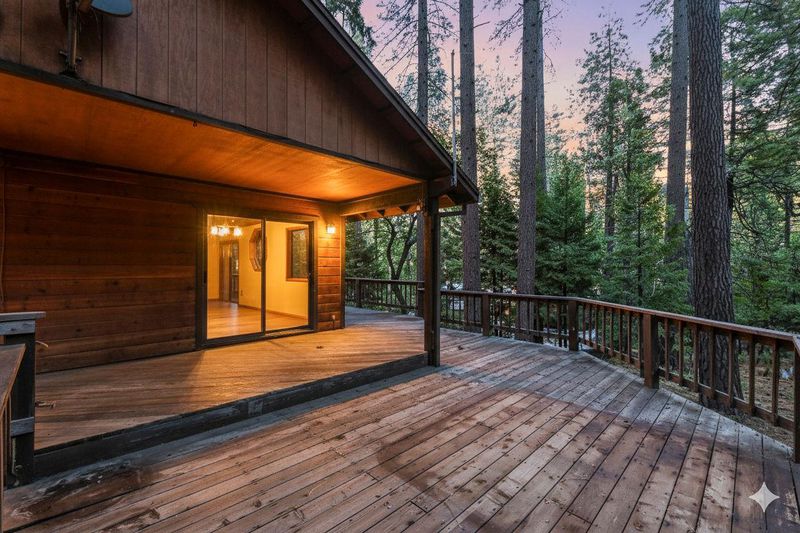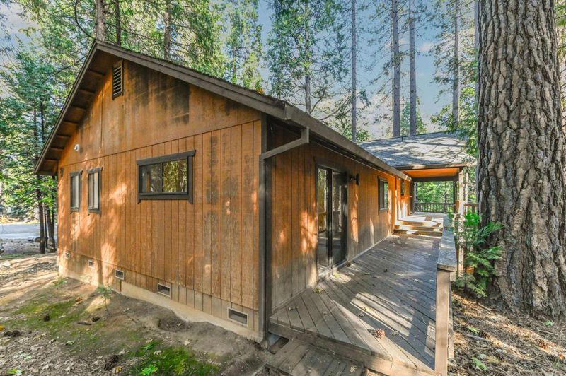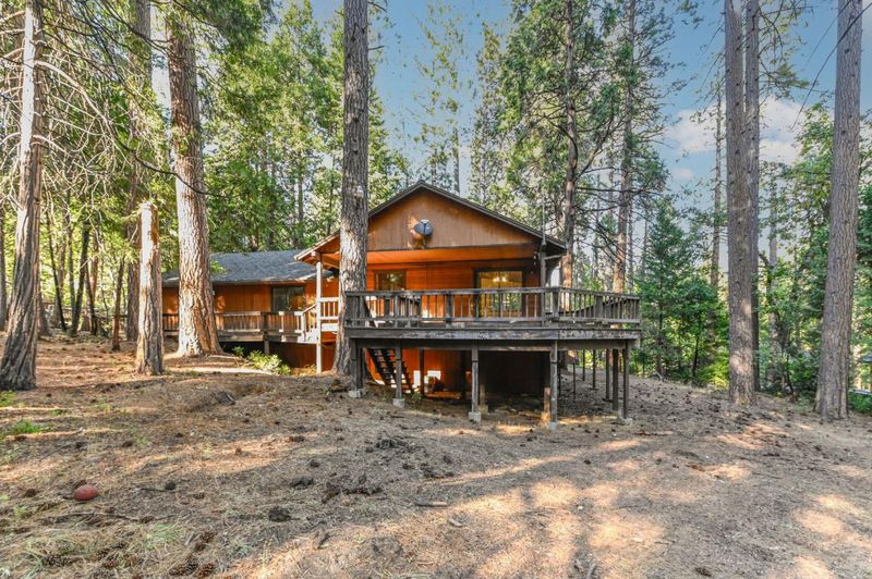 Looking for a mountain getaway? Look no further. This charming 3-bedroom, 2-bath cabin sits on a gentle 1.17-acre lot surrounded by towering pines. Step inside to a spacious living room with vaulted ceilings, large windows that fill the space with natural light, and a striking rock fireplace that creates a warm and inviting gathering spot. The open-concept large kitchen features ample storage, an island, and plenty of room to cook and connect, perfect for entertaining. New luxury vinyl plank flooring flows throughout, and both bathrooms have been tastefully updated. Step outside to the large deck, an ideal place to relax, dine, or simply take in the mountain air. The oversized two-car garage provides ample space for vehicles and mountain gear, and there is lots of level parking for guests or extra toys. Located in Arnold, this property offers easy access to the Arnold Rim Trail, White Pines Lake, and Calaveras Big Trees State Park, perfect for hiking, biking, and exploring the Sierra high country.