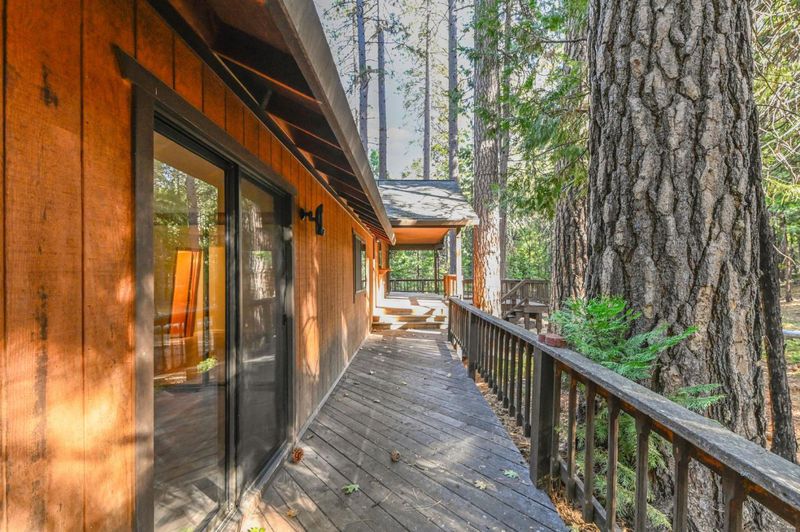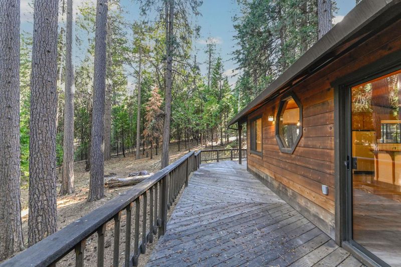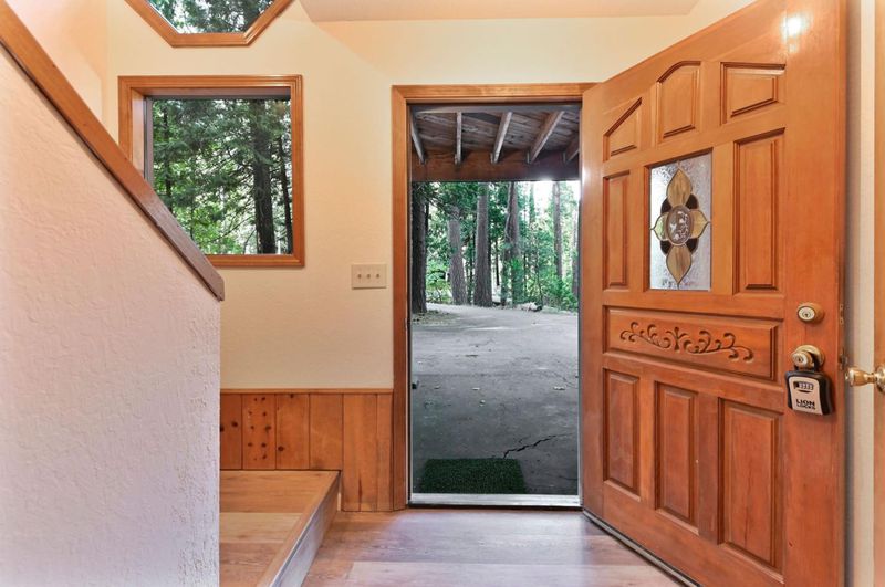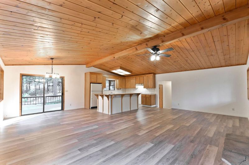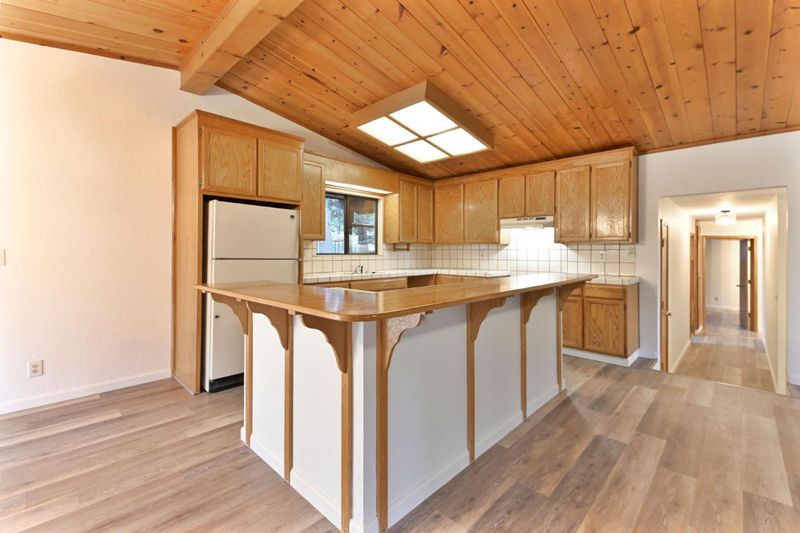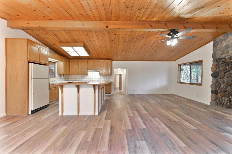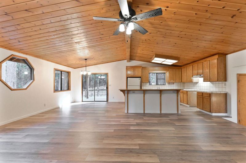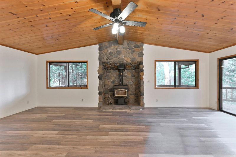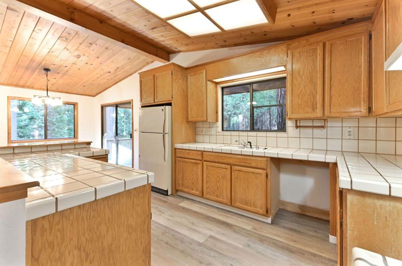 Looking for a mountain getaway? Look no further. This charming 3-bedroom, 2-bath cabin sits on a gentle 1.17-acre lot surrounded by towering pines. Step inside to a spacious living room with vaulted ceilings, large windows that fill the space with natural light, and a striking rock fireplace that creates a warm and inviting gathering spot. The open-concept large kitchen features ample storage, an island, and plenty of room to cook and connect, perfect for entertaining. New luxury vinyl plank flooring flows throughout, and both bathrooms have been tastefully updated. Step outside to the large deck, an ideal place to relax, dine, or simply take in the mountain air. The oversized two-car garage provides ample space for vehicles and mountain gear, and there is lots of level parking for guests or extra toys. Located in Arnold, this property offers easy access to the Arnold Rim Trail, White Pines Lake, and Calaveras Big Trees State Park, perfect for hiking, biking, and exploring the Sierra high country.