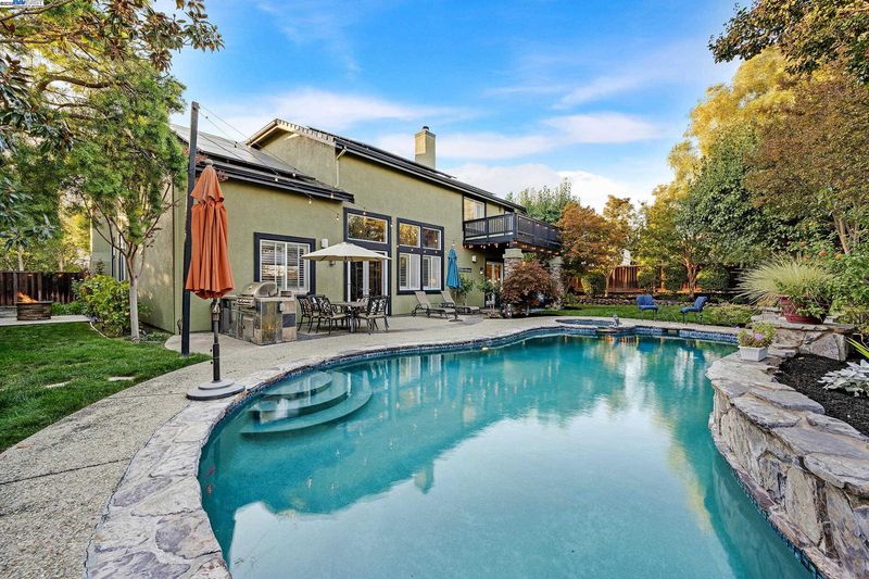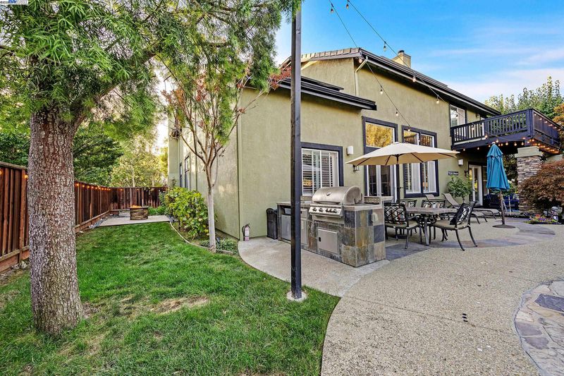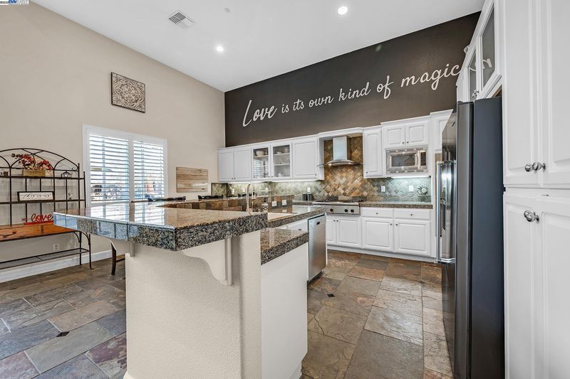 Step into refined elegance at this stunning Henry Ranch residence, where timeless craftsmanship meets modern sophistication. Soaring vaulted ceilings and rich slate floors set the tone the moment you enter, while the dramatic iron and cherry wood staircase serves as a true architectural centerpiece. The chef’s kitchen blends beauty and function with granite countertops, sleek steel accents, and custom pull-out shelving, creating a space that inspires both everyday meals and grand entertaining.Retreat outdoors to your private oasis: a heated pool with a cascading waterfall, all set within a gated, resort-style yard. Entertain with ease at the slate-top built-in BBQ, perfect for hosting under the California sun.Upstairs, a spacious bonus room with a custom wet bar, fridge, and private balcony offers sweeping views and the perfect setting for gatherings or a quiet evening escape.