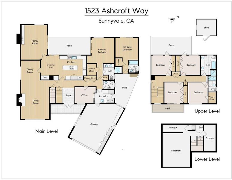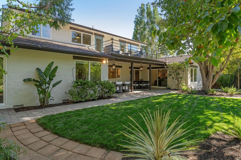 Beautifully updated and impressively spacious six bedroom 3,580 sq.ft. home plus office with additional 620 sq.ft. basement showcases timeless Monterey Colonial influences on a more than one-third-acre 15,876 sq.ft. lot in one of Sunnyvales most sought-after neighborhoods. Newly refreshed landscaping introduces the graceful two-level design, highlighted by its signature covered upstairs balcony and double-door entrance adorned with leaded glass. Inside, spotted gum hardwood floors, crown moldings, and soaring beamed ceilings define elegant yet comfortable living spaces designed for a variety of lifestyles. A spacious living room with cathedral ceiling and focal-point fireplace, along with a formal dining room, anchor the main level. The beautifully updated kitchen and casual dining area plus a spacious family room all open to the rear yard, where expansive outdoor space is ultra-private and bordered by Stevens Creek. A large covered patio, new lawn, fruit trees, and a greenhouse enhance the setting. A finished lower level adds versatile space for recreation, fitness, storage, and/or potential wine cellar use. Positioned near the Los Altos and Cupertino borders, this home offers an unbeatable Silicon Valley lifestyle with access to acclaimed Cupertino schools.