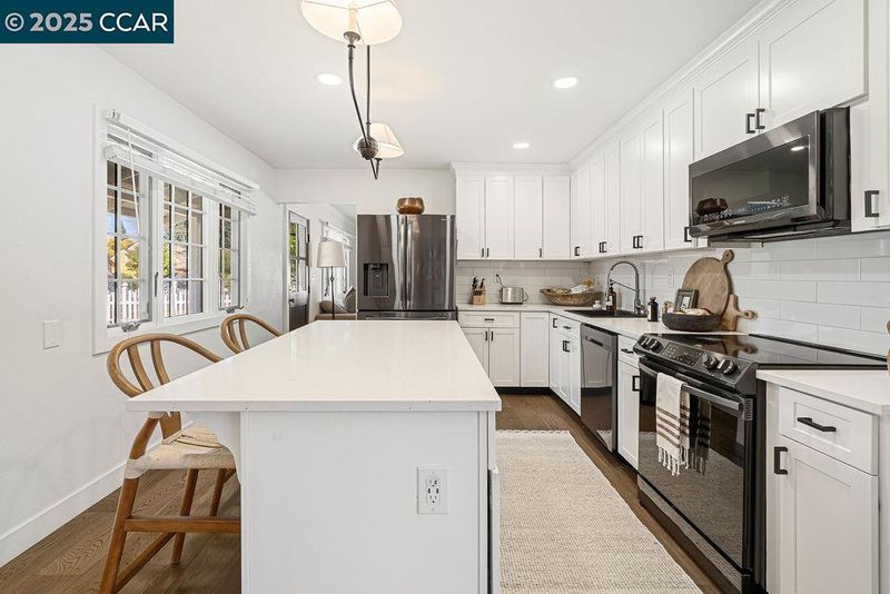 - Dishwasher, Electric Range, Microwave, Free-Standing Range, Refrigerator, Stone Counters, Electric Range/Cooktop, Disposal, Kitchen Island, Pantry, Range/Oven Free Standing, Updated Kitchen