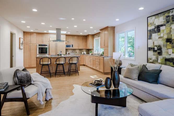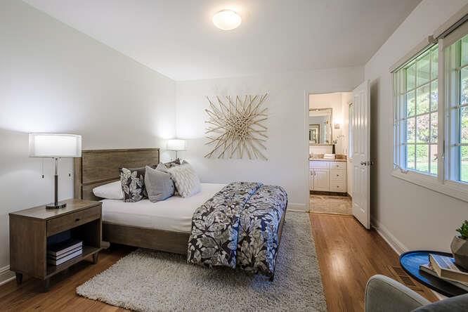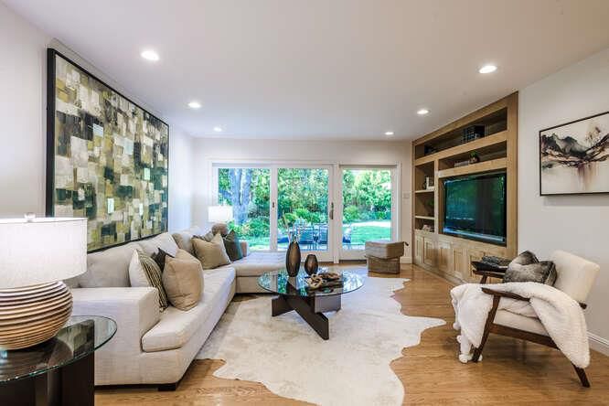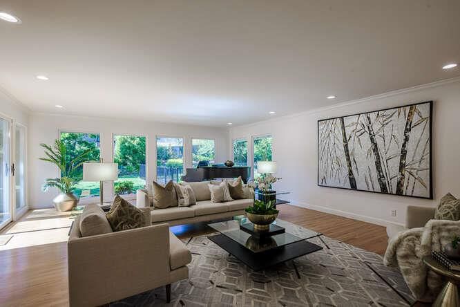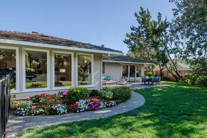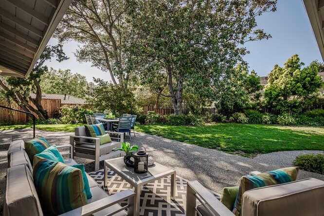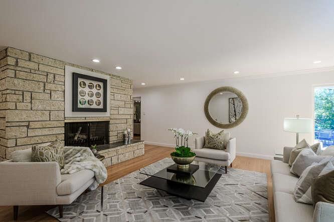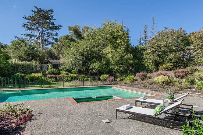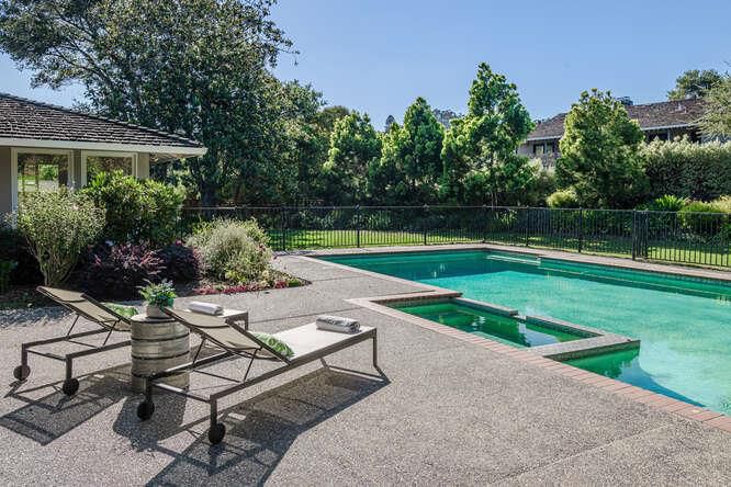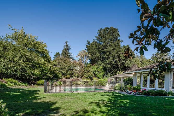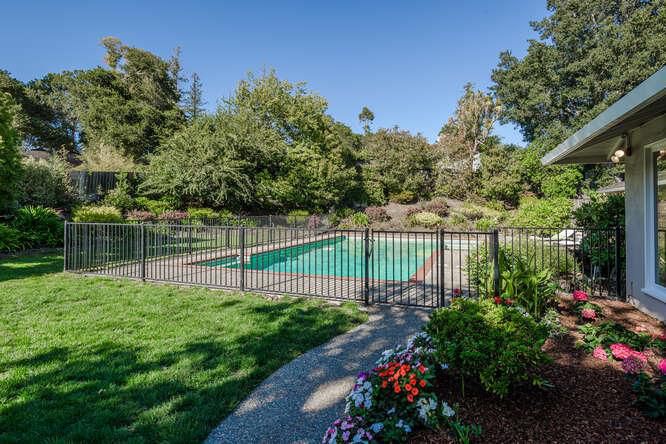 Situated on a serene and mostly level 0.53-acre lush landscaped lot in desirable Lower South Hillsborough, this exceptional one-level California Ranch-style home offers 4 bedrooms, 3.5 baths, and 3,170 sq ft of functional and spacious living areas. The thoughtful floor plan features a sizeable entry with two coat closets, an expansive light-filled living room with a dramatic floor-to-ceiling stone fireplace, a separate dining room and open kitchen/family room. The remodeled kitchen includes a center island, granite counters, and quality appliances - Thermador ovens, a 5-burner Wolf range, Miele dishwasher, and Sub-Zero refrigerator - opening to a spacious family room flowing to the backyard. The bright primary suite includes a generous bathroom, two walk-in closets and built-in storage. Additional features include warm hardwood floors, recessed lights, a large powder room with two closets, separate laundry room and a 3-car garage. Garden views from nearly every room highlight the verdant landscaping and private yard with a sparkling pool. Ideally located close to top-rated schools, downtown Burlingame and San Mateo, and commuter routes. With its exceptional layout, lush surroundings, and prime location, this property exemplifies the best of California living - all on one level.
