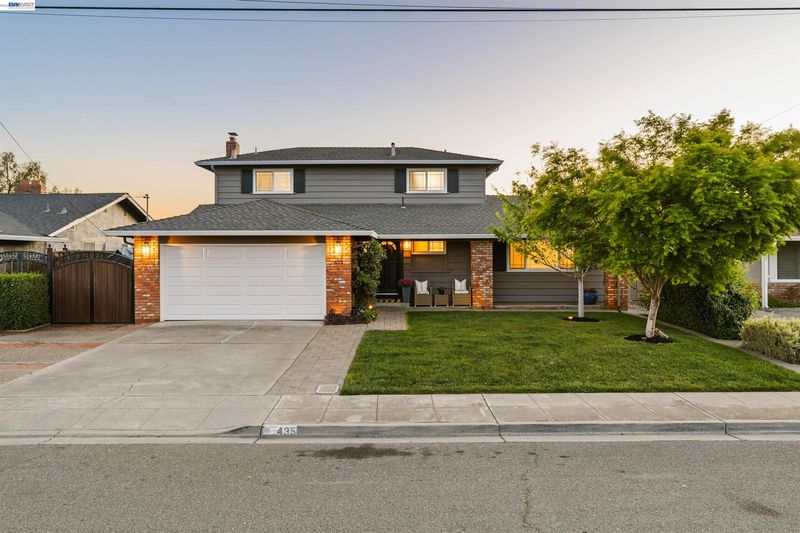 Welcome to 435 El Caminito Drive, Livermore – Located in the desirable Sunset West neighborhood. This EAST FACING home features 4 bedrooms and 2 full bathrooms, this thoughtfully designed layout includes a PRIMARY BEDROOM AND FULL BATHROOM ON THE MAIN FLOOR. The home has been extensively refreshed with newer interior and exterior paint, updated flooring, new upstairs carpet, and energy-efficient LED dimmable recessed lighting throughout. The kitchen is equipped with a newer oven and cooktop. Additional upgrades include six new windows that enhance natural light and efficiency. The garage is equipped with a Tesla charger. Step outside to a private backyard retreat featuring newer low-maintenance turf, newer landscaping, mature orange and peach trees, and a covered patio—perfect for outdoor dining, relaxing, and entertaining year-round. Located in a well-established Livermore neighborhood close to parks, schools, shopping, and commuter routes, this home offers both convenience and lifestyle.