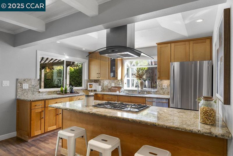 - Gas Range, Refrigerator, Gas Water Heater, Breakfast Bar, Breakfast Nook, Stone Counters, Gas Range/Cooktop, Pantry