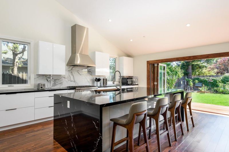 Pristine elegance is the only way to describe this home! The Chef's kitchen is the centerpiece, with Thermador appliances, a large LG refrigerator, and a 5 panel Centor glass door that fully opens to the backyard, creating seamless indoor-outdoor living. The 10-foot island, finished in elegant modern stone, provides seating for 4, generous storage, and a perfect gathering space. Fully renovated in 2022, this home has been transformed from a classic 1,700 sq. ft. layout into a bright, open modern residence with a 629 sq. t. expansion and soaring 14-ft ceilings in the kitchen and dining area. Enjoy solid hardwood floors and solid wood doors! Modern lighting, dual-pane windows, and fully owned solar panels. Smart features include central heating/air, fire sprinklers, and a recirculating hot water system.The home offers 3 suites, including 2 primary bedrooms with spa-style bathrooms finished in full tile and premium fixtures.High-end finishes! Outdoors, a lush pergola and an array of fruit trees including grape, plum, lime, tangerine, fig, and persimmon create a private garden oasis. A Tesla charger and modern laundry setup. A detached shed which can be used for whatever you see fit! This stunning home blends timeless quality with modern upgrades, move-in ready and built to impress.
