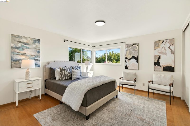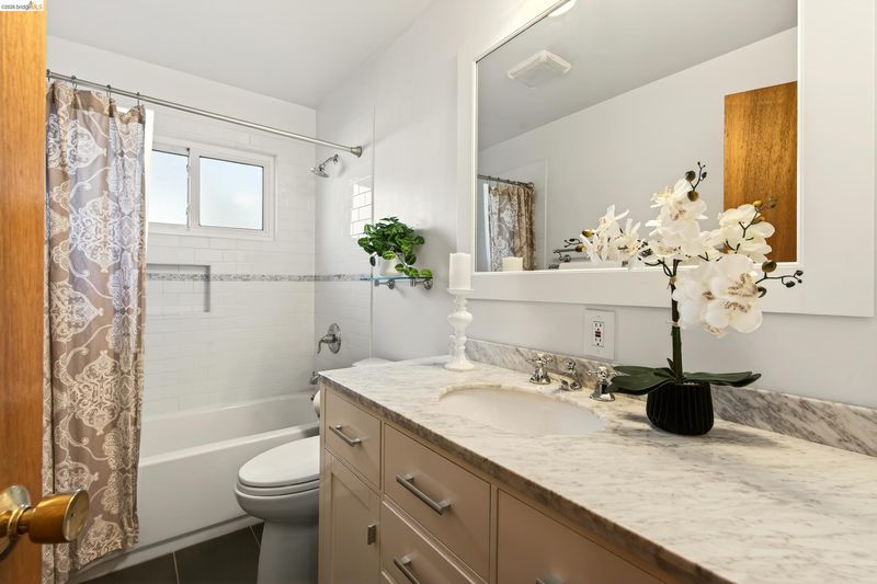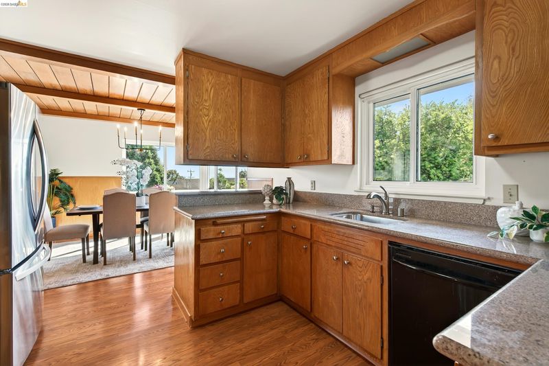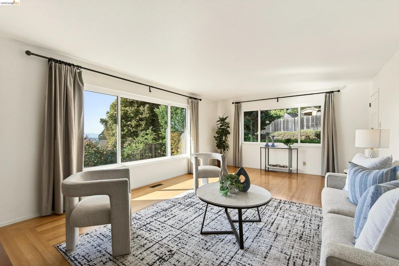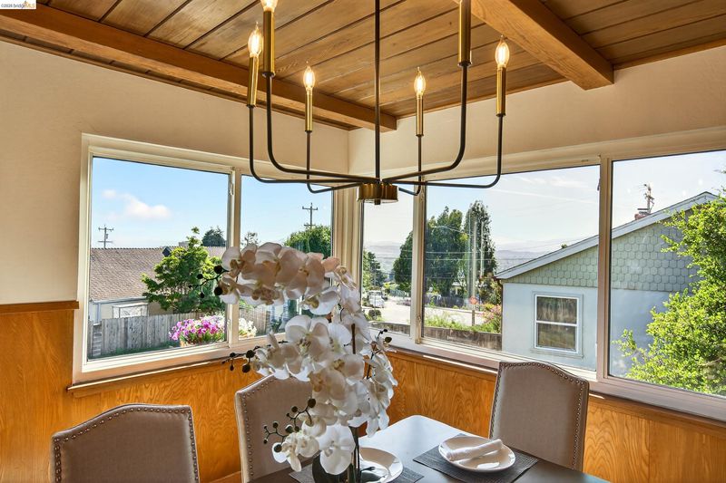Built in 1959, this classic mid-century home offers timeless design and comfortable living in a desirable East Richmond Heights neighborhood. The home features almost 1,400 sq ft of living space, 3 Bedrooms, 2 beautifully updated bathrooms, and over 500 sq ft of 2-car garage space. The bathrooms have been thoughtfully renovated with stylish Pottery Barn-inspired finishes, creating a fresh and inviting feel while maintaining the home's character. Large picture windows bring in natural light and allow for enjoying the views of Mount Tamalpais, the SF Bay and, beyond. The kitchen offers a great footprint and presents an excellent opportunity for a new owner to add their own design touches and create a kitchen of their dreams. Conveniently located near parks, schools, shopping, and commuter routes. This home blends classic architecture, modern updates, and future potential—serene backyard with mature landscape.