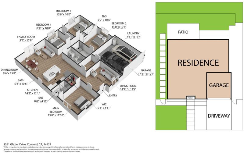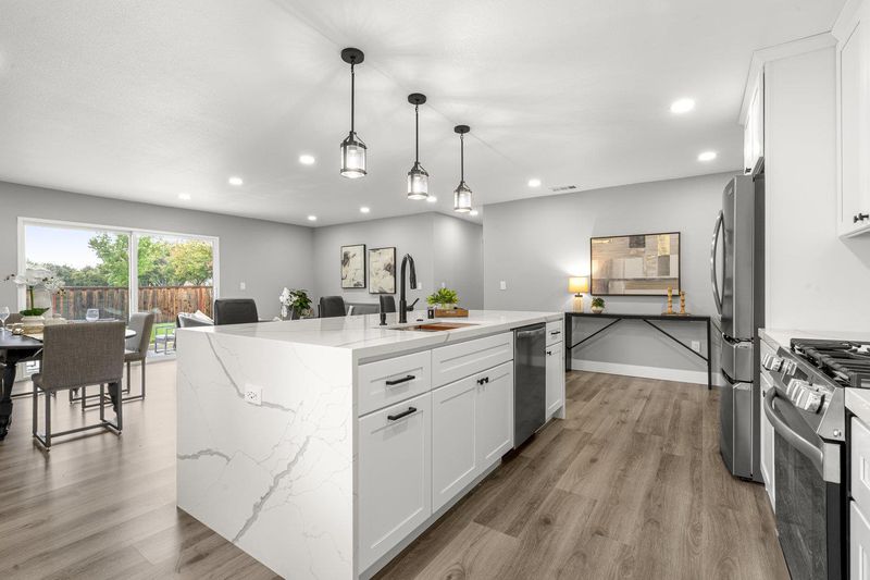 Discover a harmonious blend of comfort, style and function in this fully renovated 4-bedroom, 3-bath retreat in the heart of vibrant Concord. The spacious 1,658-square-foot open concept floor plan flows with modern elegance and timeless character. The gourmet kitchen is a masterpiece, featuring sleek quartz countertops, striking backsplash, a generous sized island with a sink, and high-end appliances, making every meal a culinary experience. Separate and unwind in the formal living room, a perfect space for relaxation. The thoughtfully designed layout includes 2 convenient primary suites on opposite ends of the home and luxurious updated bathrooms with designer touches, solid surfaces and stylish showers. Flooring throughout consists of tile and luxury vinyl planks, providing both style and durability. With central climate control and inside laundry space, this move-in-ready home adds ease to daily routines and peace of mind provided the depth and quality of renovation. A standout property within the Mt. Diablo Unified School District and proximity to an abundance of local amenities, this is an opportunity not to be missed.
