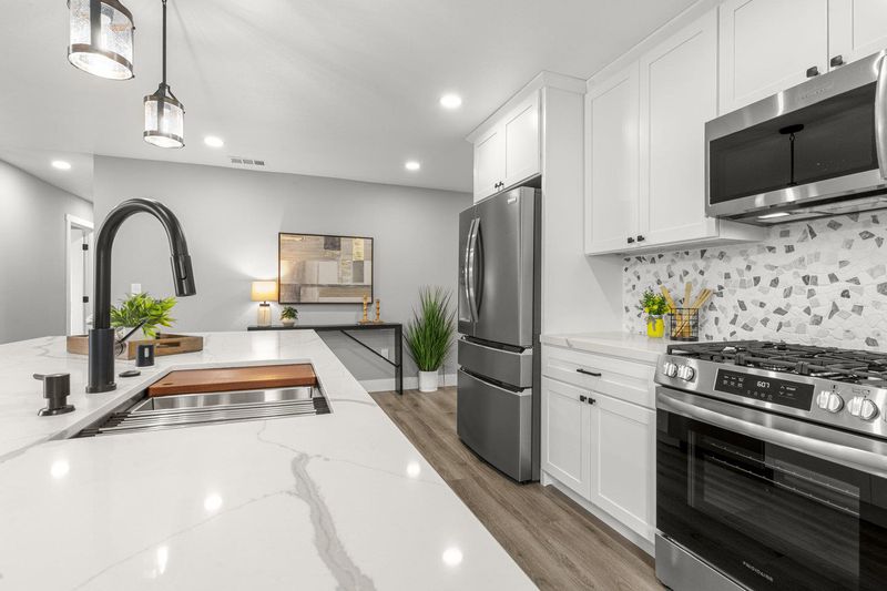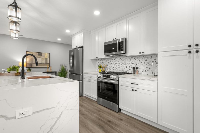 - Countertop - Quartz, Dishwasher, Garbage Disposal, Island with Sink, Oven Range - Gas, Refrigerator