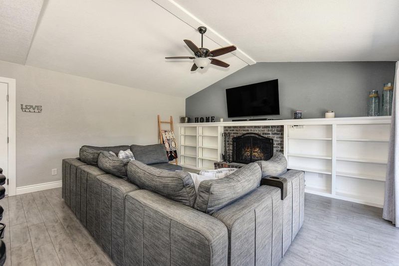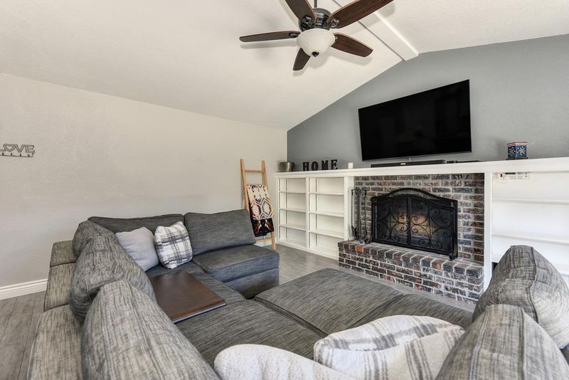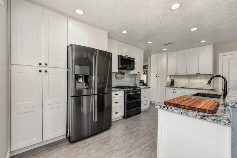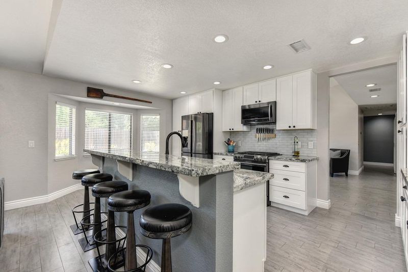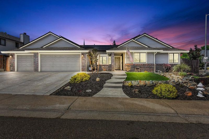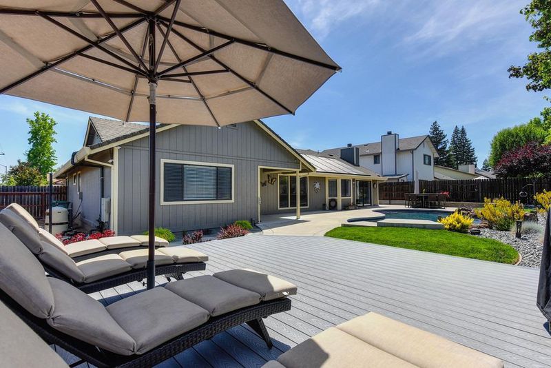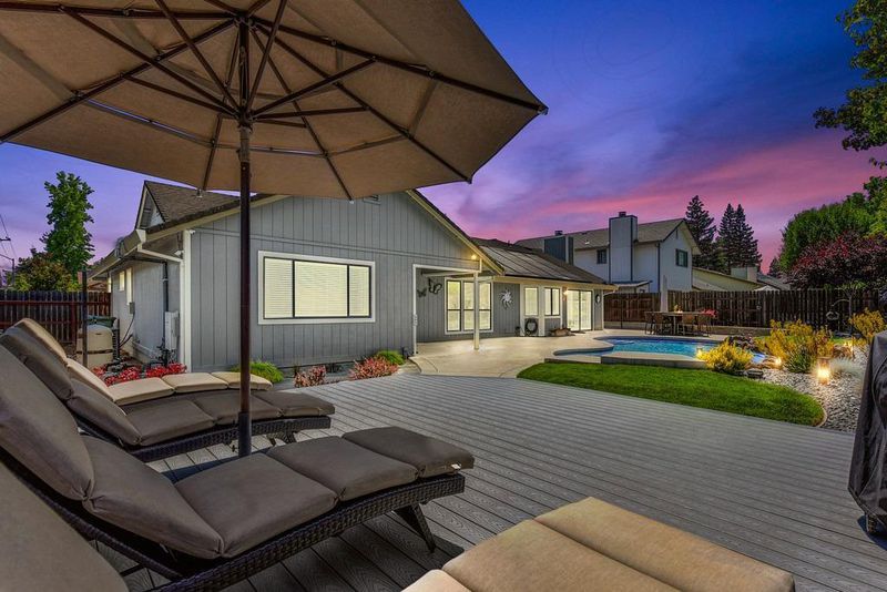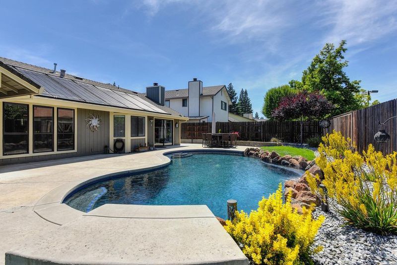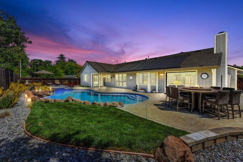 Step into the good life in Orangevale! This beautifully remodeled single-story home offers nearly 2,000 sq ft of modern living with 4 bedrooms, 2 bathrooms, and a 3-car garage. The open-concept layout features a fully updated kitchen with white cabinetry, granite counters, and dark stainless appliances. Both bathrooms have been tastefully remodeled with custom tile work. Enjoy energy efficiency with an owned 7.3kW solar system, Tesla Powerwall, Nest thermostat, Ring, and Rachio smart irrigation. The private backyard retreat boasts a resurfaced pool, Trex-style sun deck, new concrete, and no rear neighbors. Ideally located on a quiet cul-de-sac near parks, schools, shopping, and the American River. This home truly has it all!