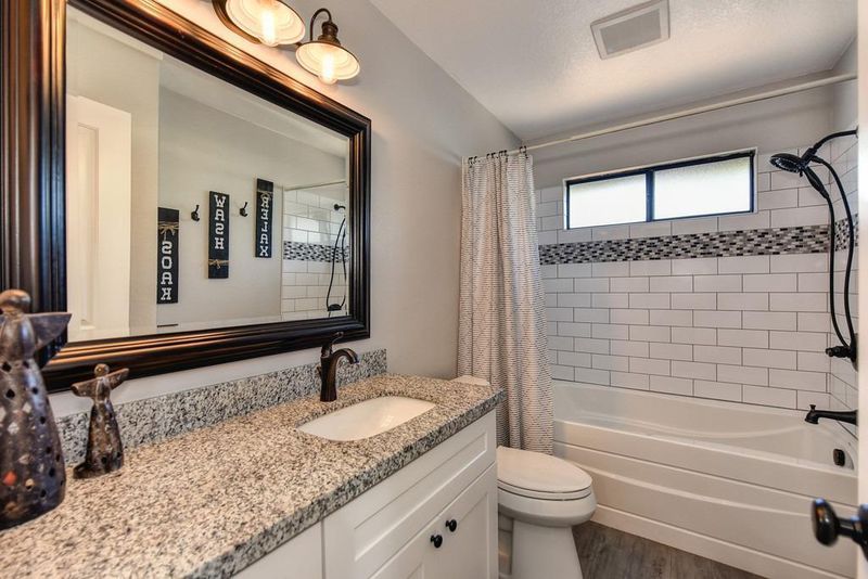 - Double Sinks, Full on Ground Floor, Granite, Primary - Stall Shower(s), Shower over Tub - 1, Tile, Updated Bath