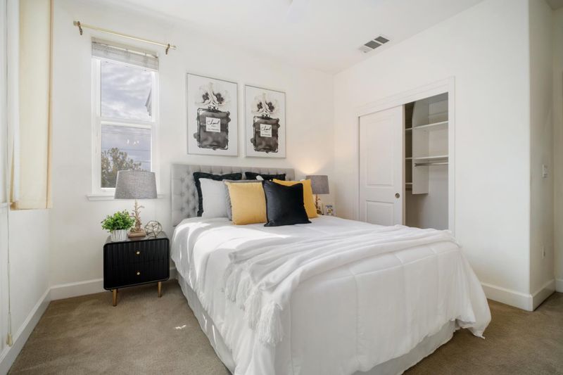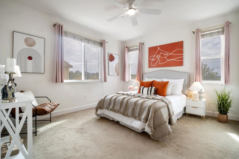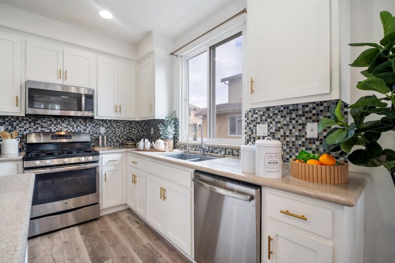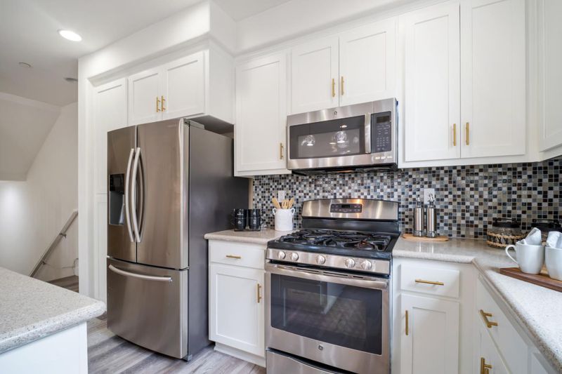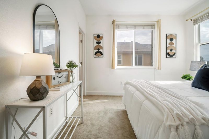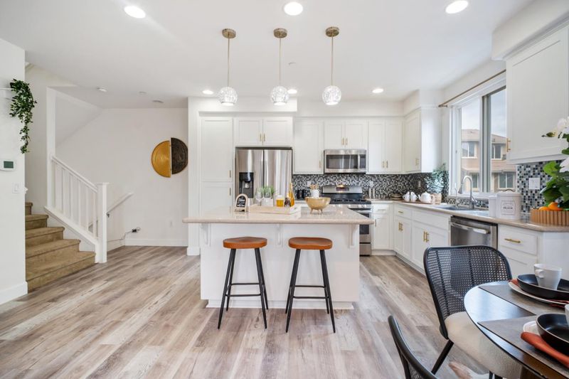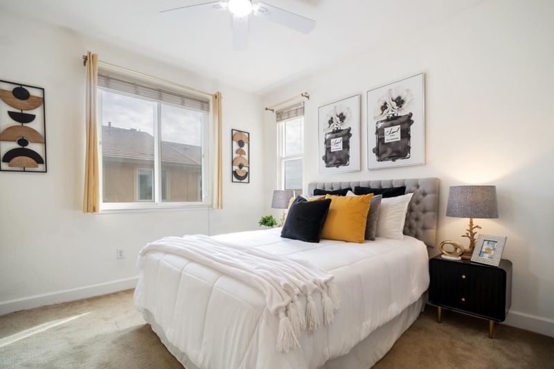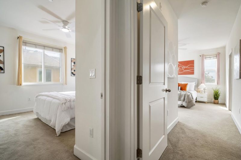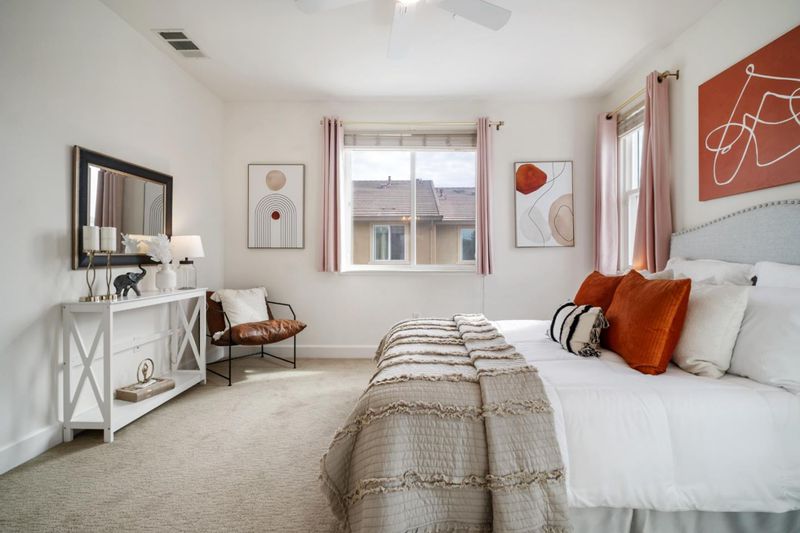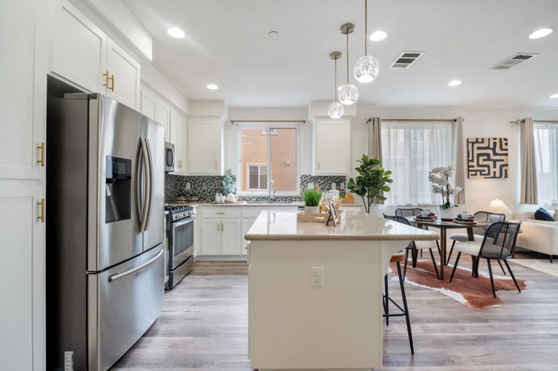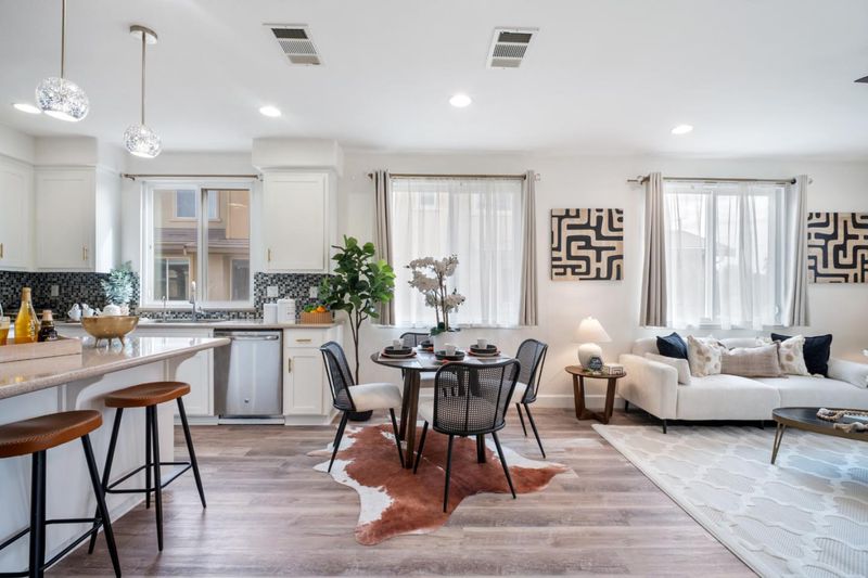 PRIME MILPITAS LIVING! This home offers the ultimate blend of Silicon Valley convenience and modern living. This impeccable corner unit boasts abundant ambient light through large, double-pane windows. The flexible open floor plan is highly desirable: the main level features a full bedroom and updated bathroom, perfect for a home office, guest suite, or in-laws. The open living area features new LVP flooring and flows into an updated gourmet kitchen. Upstairs, 2 bedrooms function as private suites, each with an attached, updated full bathroom. Storage is maximized with custom shelving in all closets. Comfort is ensured by a smart thermostat managing the split-level HVAC, plus fans in every room. Unbeatable Location: Your commute is stress-free with walkable access to the Milpitas BART/Light Rail and instant access to I-880, I-680, 237, & 101. The home is within walking distance of the elementary school and a community park. Major retail, including the Great Mall, Trader JJoe's, Costco, and Sprouts, are moments away and a walking/running trail right behind the community. The 2-car garage is pre-equipped with a Level-2 EV Charger and smart opener. Enjoy one of the lowest HOAs in the Bay Area! Schedule a private tour today! OPEN HOUSE this week Fri 4-6pm; Sat & Sun 1-4pm.
