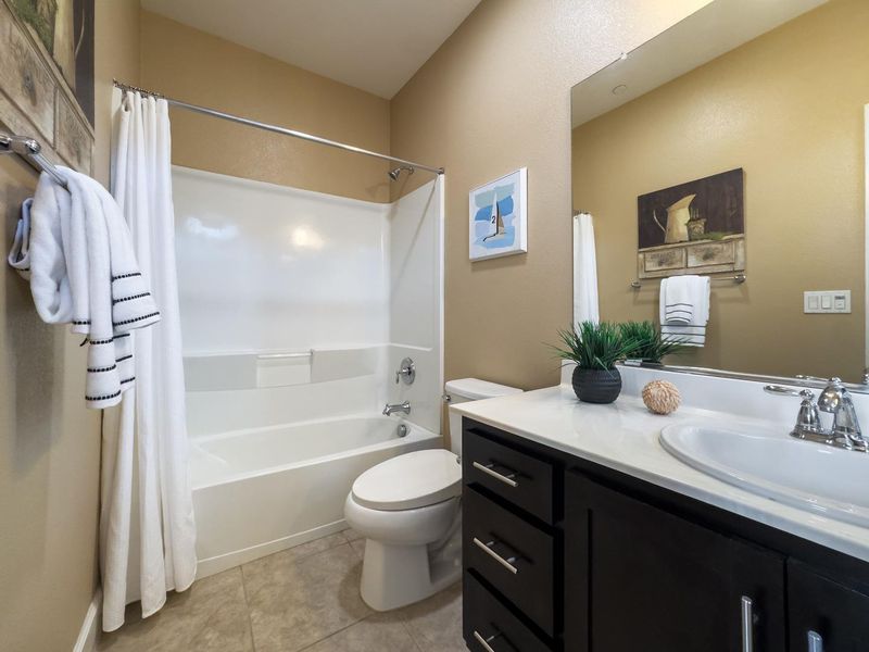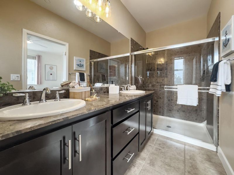 - Double Sinks, Granite, Oversized Tub, Primary - Stall Shower(s), Stall Shower, Tile, Updated Bath