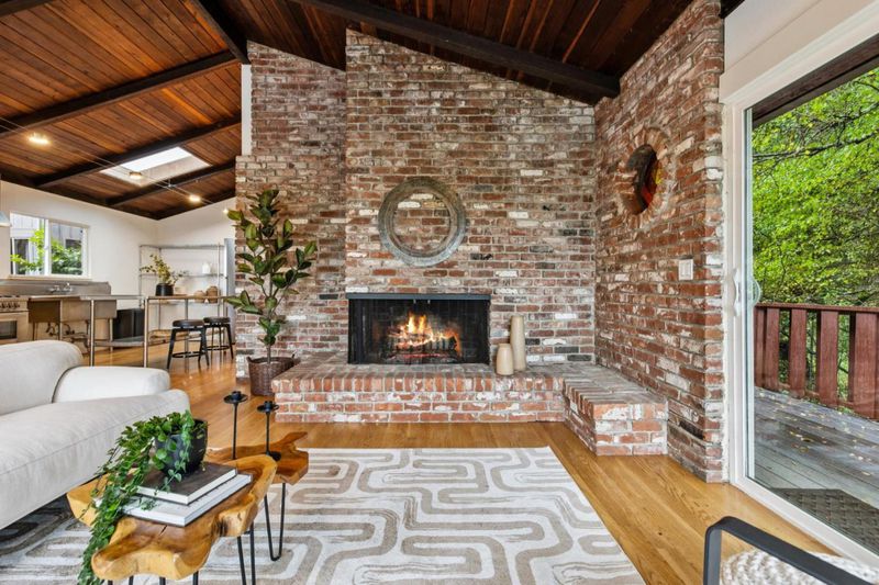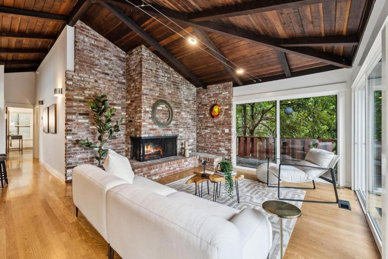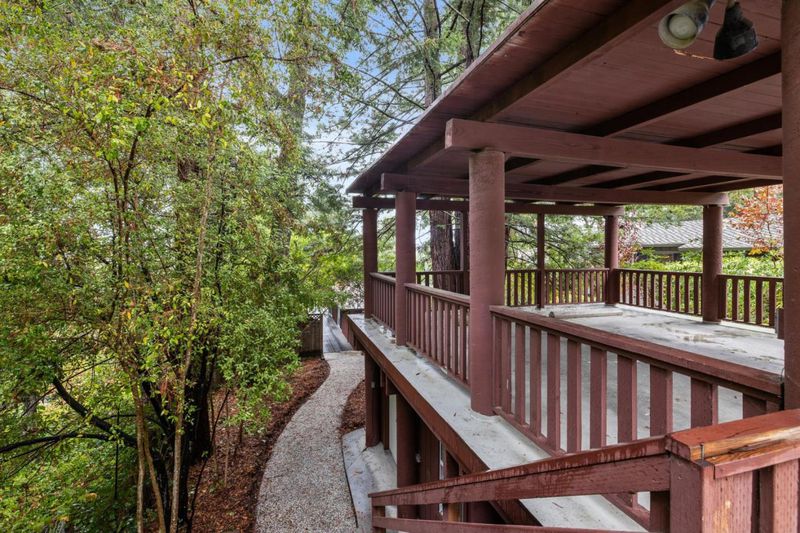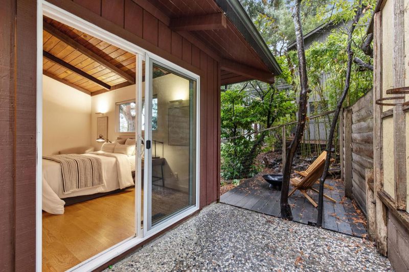 Exceptional Portola Valley bungalow located in Woodside Highlands. This charming 2-bedroom, 2-bath home with a den offers 1,430± sqft of living space on a generous 13,507± sqft lot surrounded by nature. The home features an inviting floor plan with open-beam ceilings and a large wood-burning fireplace that creates a warm and welcoming atmosphere. Upstairs, find the primary suite with a walk-in closet and sliding doors that open to the deck. The den provides flexibility for a home office or creative space. Upstairs is finished with an updated bathroom and a kitchen with stainless steel appliances. A striking spiral staircase leads to the lower living area, where you'll find a spacious family room with a cozy fireplace perfect for relaxing or entertaining. Downstairs find a bedroom and a modern bathroom. Enjoy the seamless connection to the outdoors with private patios and garden areas offering peaceful views of the natural landscape. Additional highlights include a carport with a large storage room underneath. Enjoy easy access to Hwy 280 for all your Bay Area commutes. Located in a tranquil, sought-after neighborhood near scenic trails, local shops, and top-rated Portola Valley schools, this home captures the best of California living.